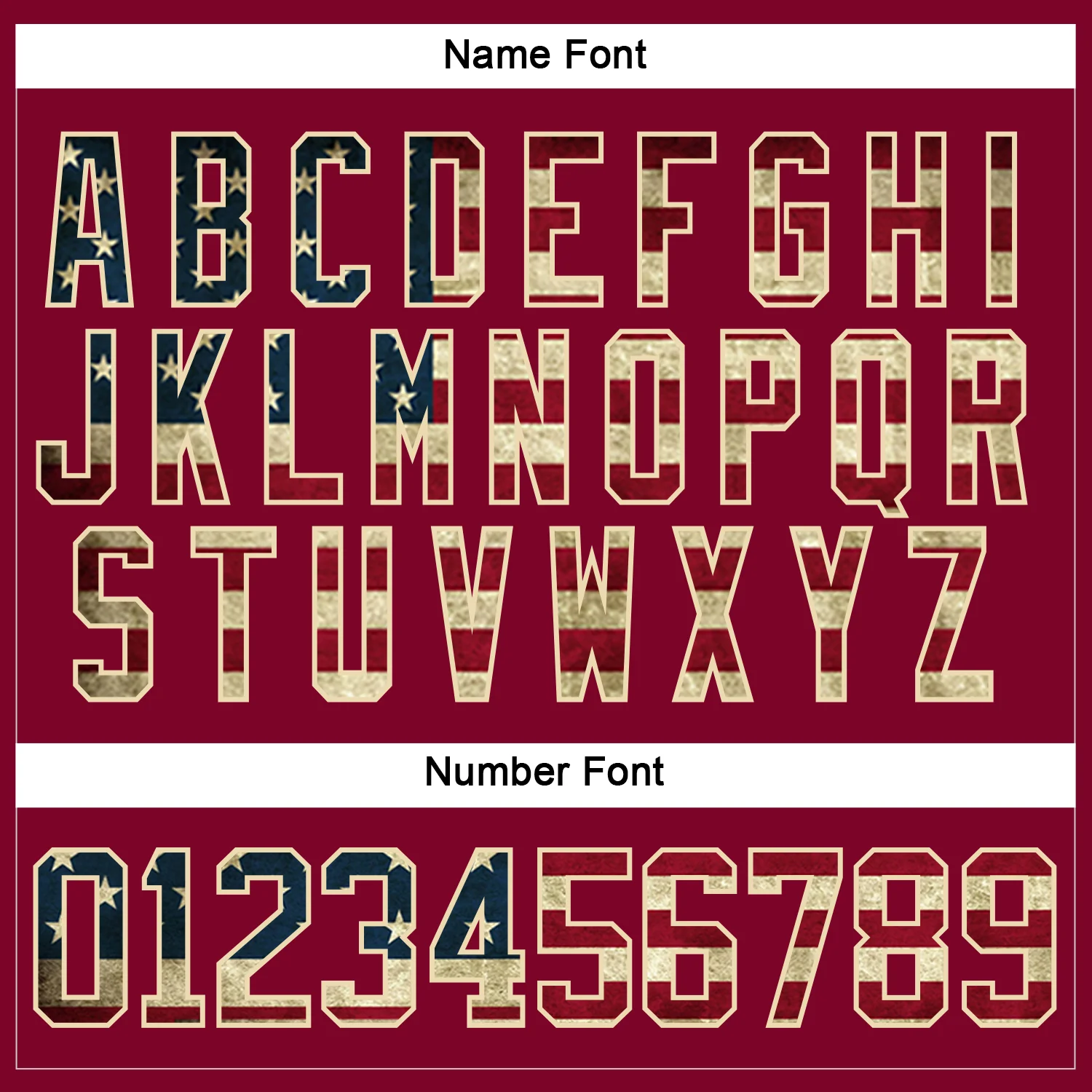 Custom Maroon Vintage USA Flag Cream-Black Hockey Lace Neck Jersey