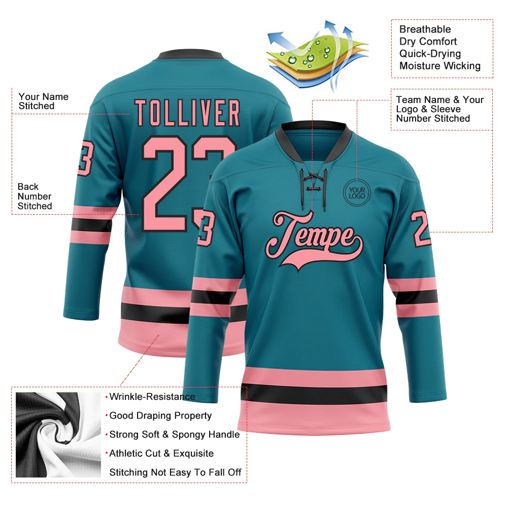 Custom Teal Medium Pink-Black Hockey Lace Neck Jersey