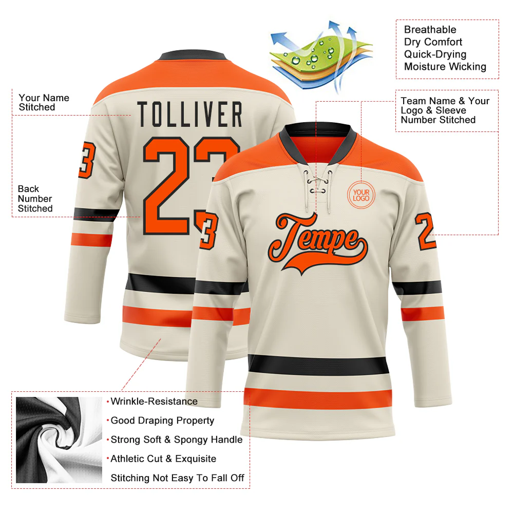 Custom Cream Orange-Black Hockey Lace Neck Jersey