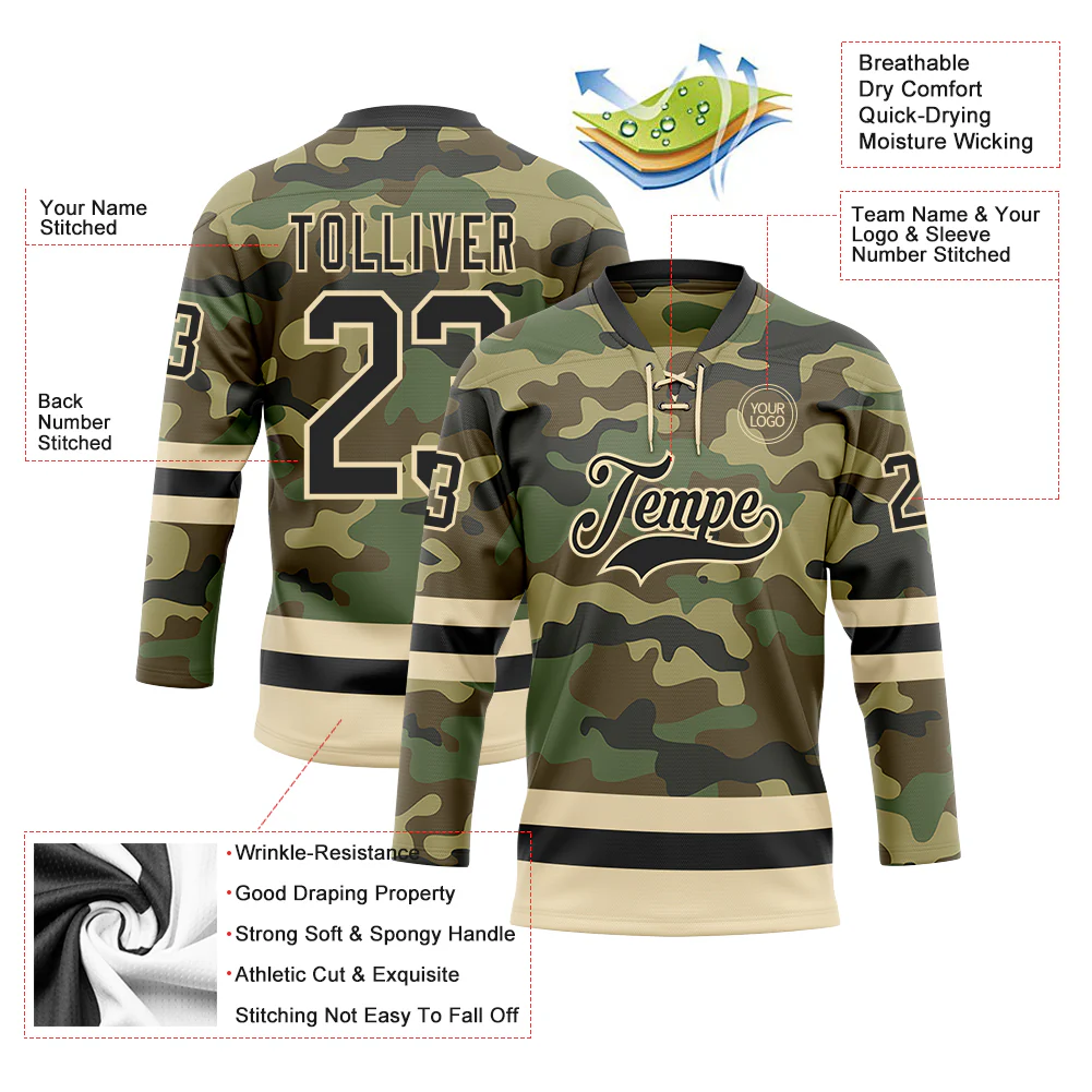 Custom Camo Black-Cream Salute To Service Hockey Lace Neck Jersey