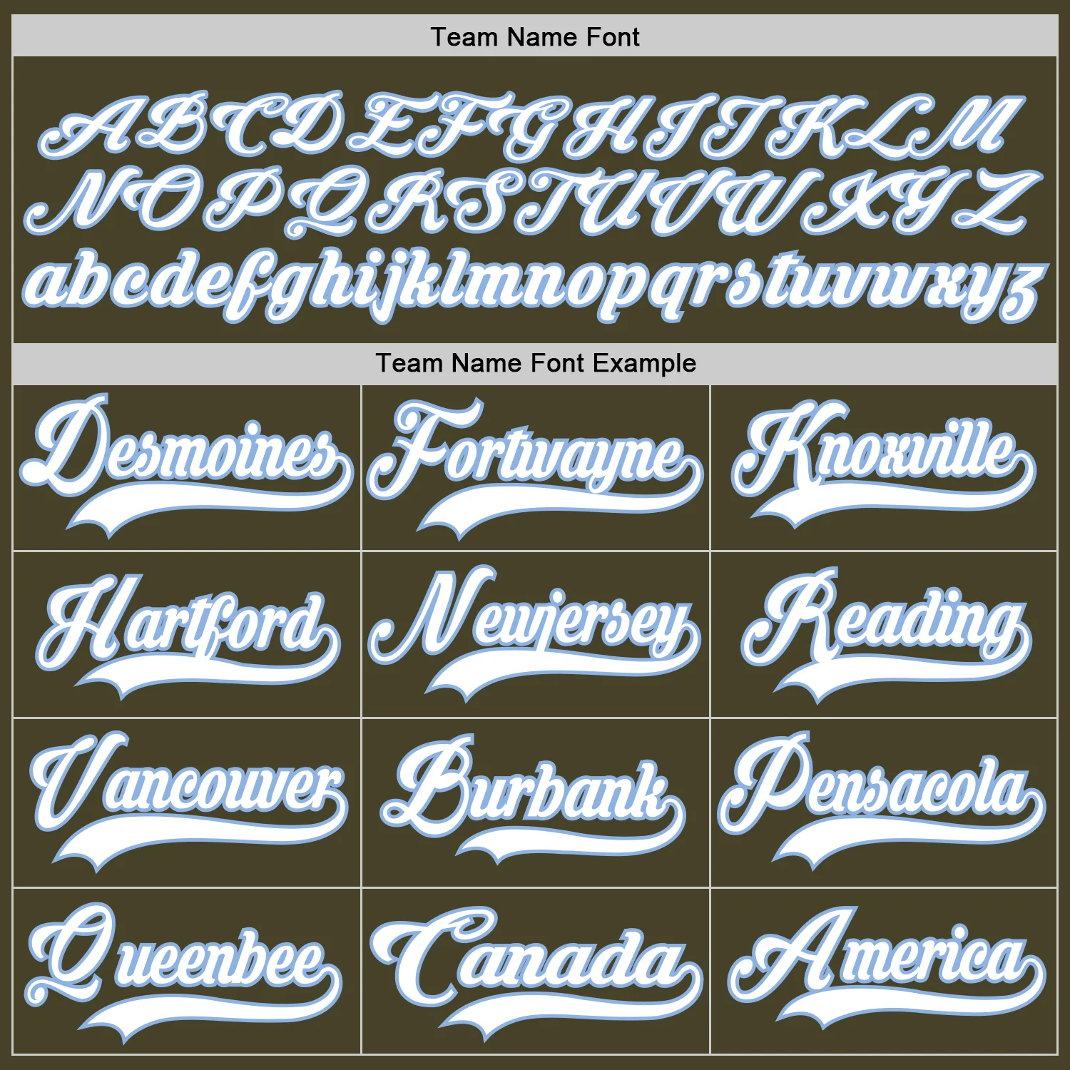 Custom Olive White-Light Blue Salute To Service Hockey Lace Neck Jersey