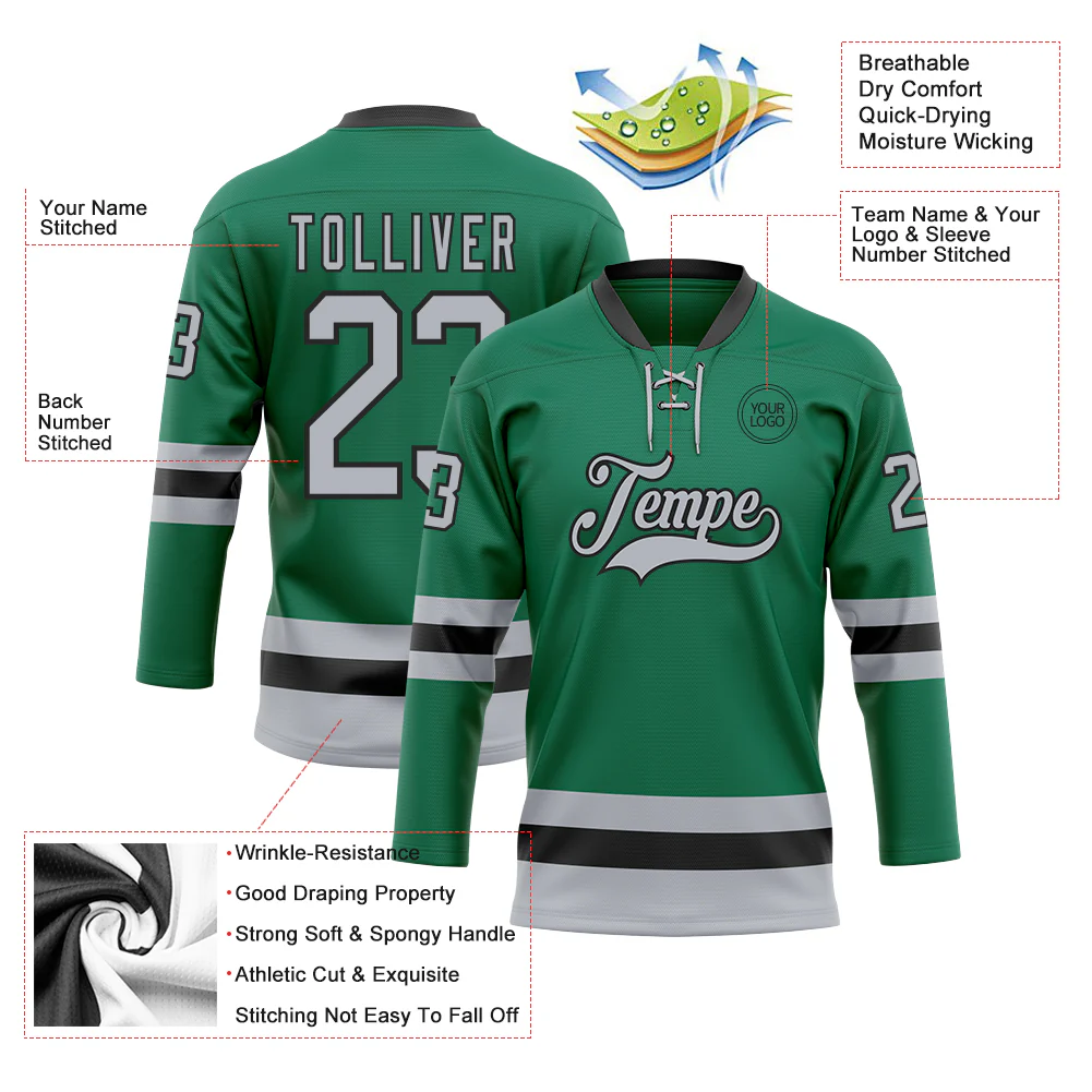 Custom Kelly Green Gray-Black Hockey Lace Neck Jersey
