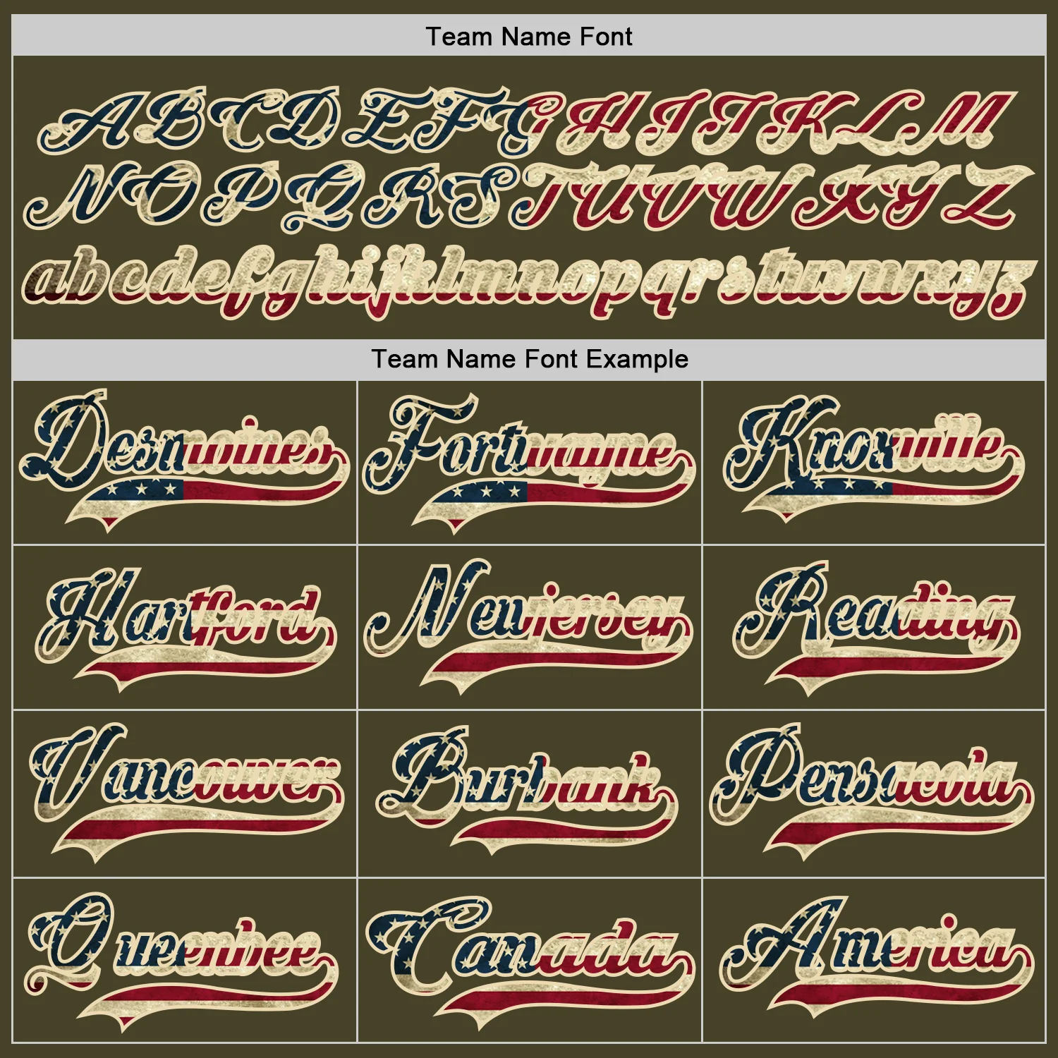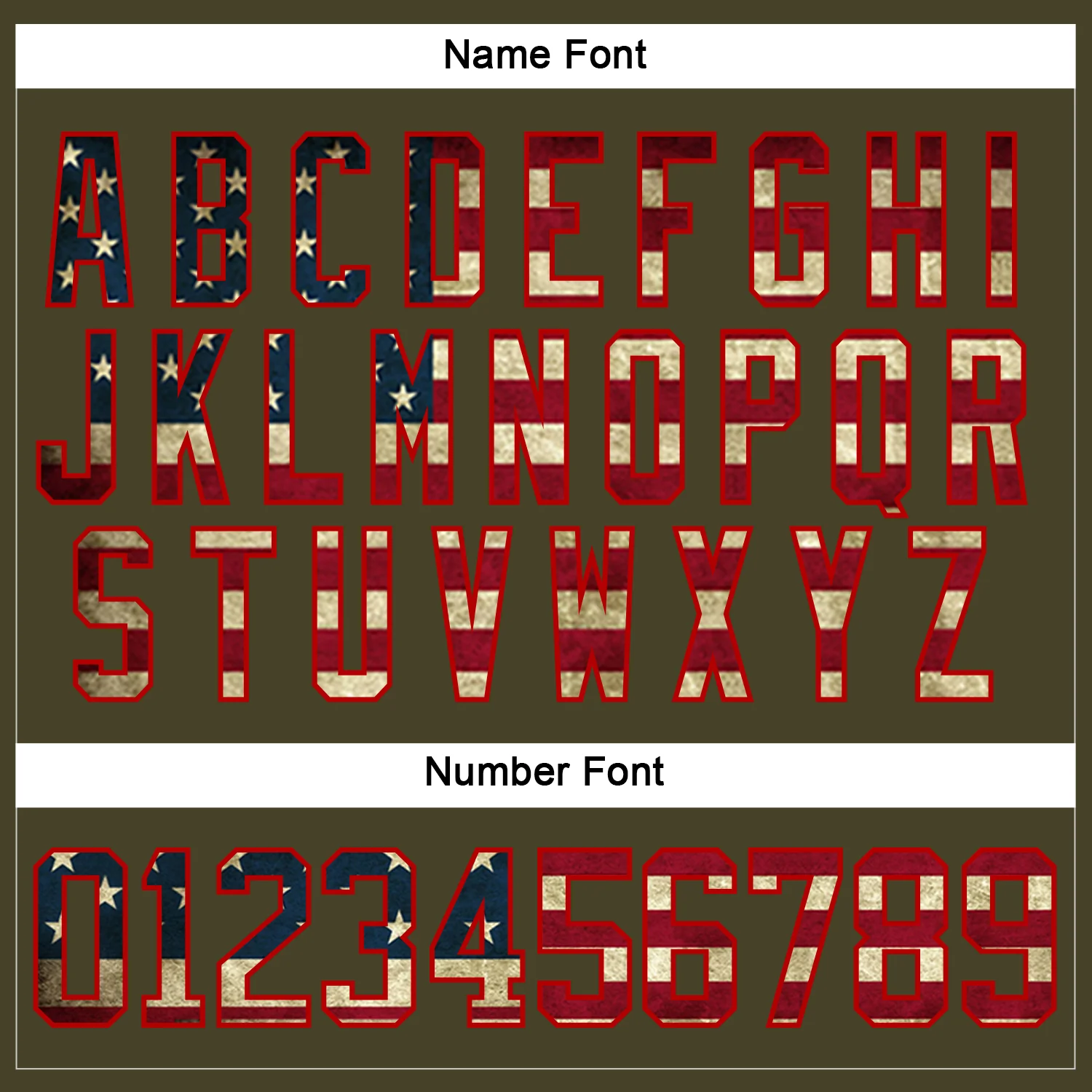 Custom Olive Vintage USA Flag Red-Cream Salute To Service Hockey Lace Neck Jersey