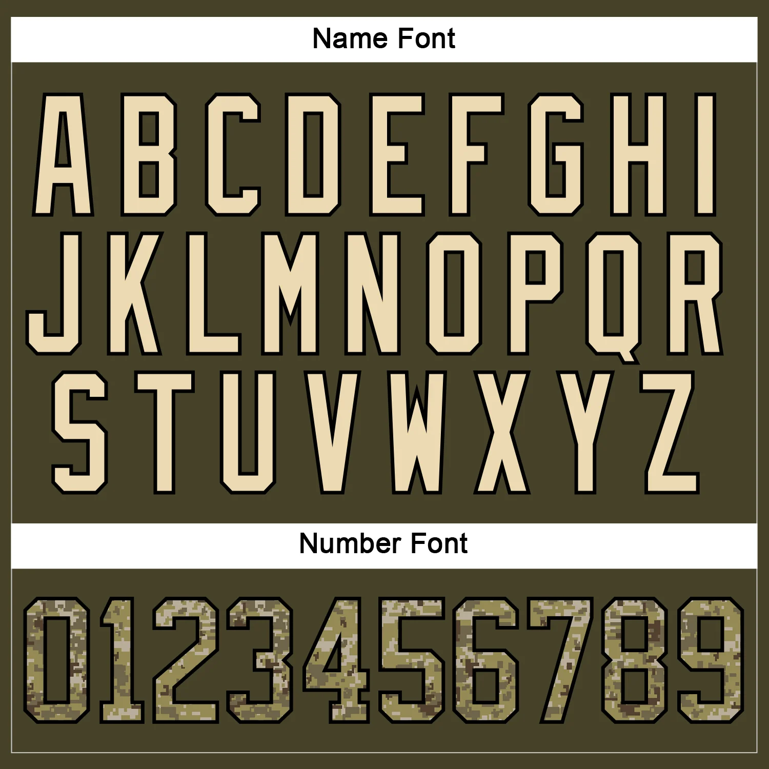 Custom Olive Camo Black-Cream Salute To Service Hockey Lace Neck Jersey
