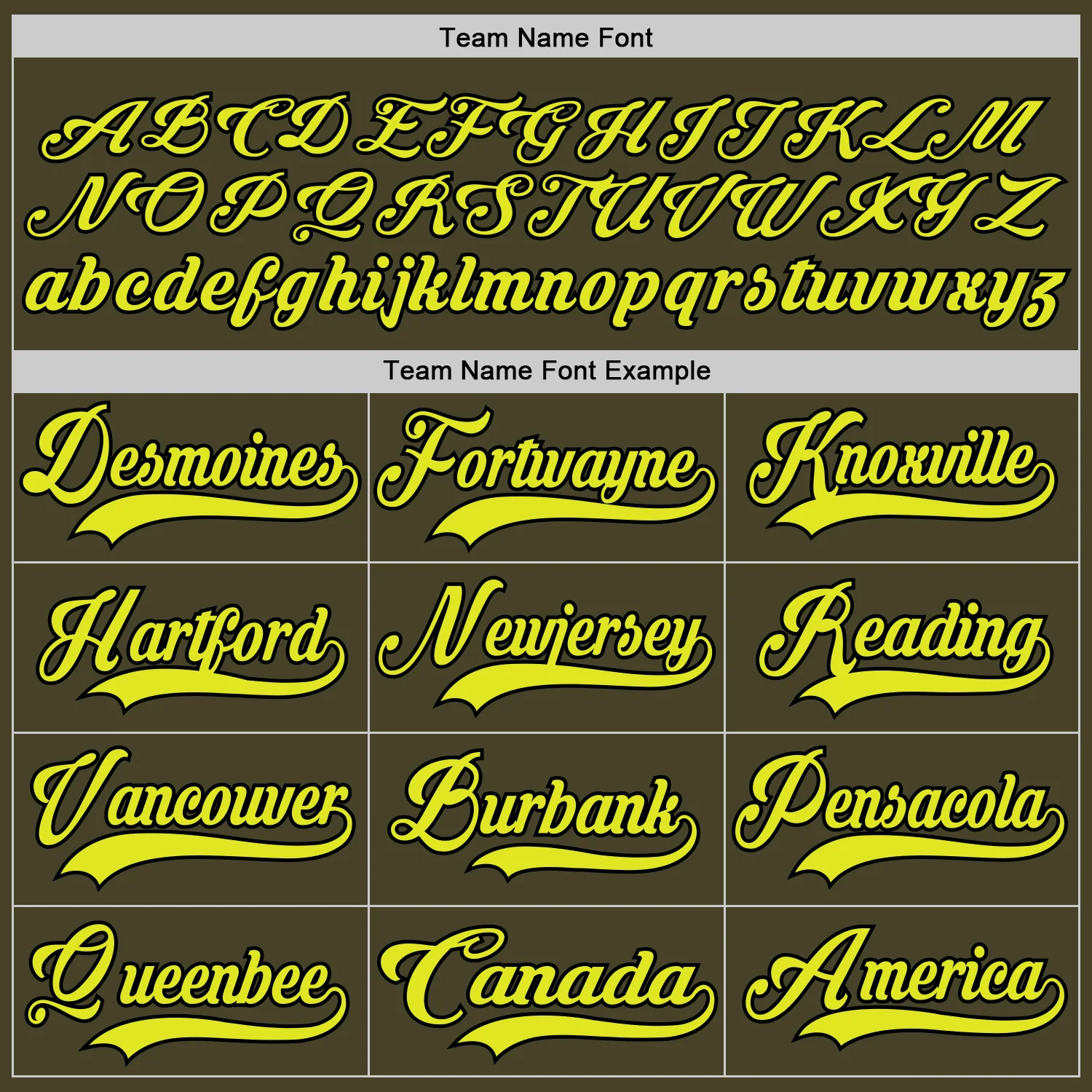 Custom Olive Neon Yellow-Black Salute To Service Hockey Lace Neck Jersey