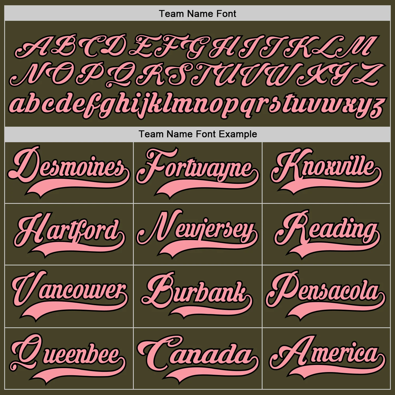Custom Olive Medium Pink-Black Salute To Service Hockey Lace Neck Jersey