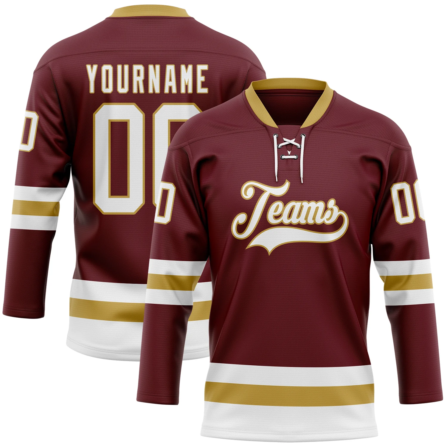 Custom Burgundy White-Old Gold Hockey Lace Neck Jersey