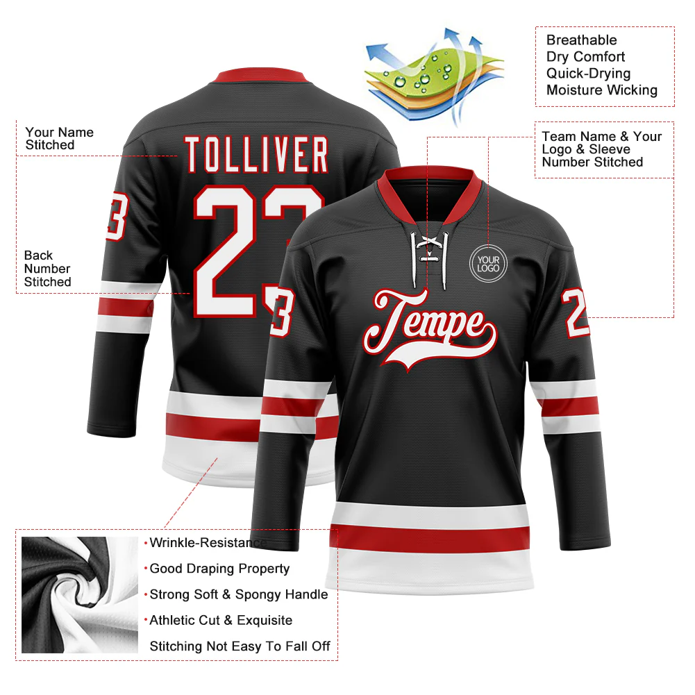 Custom Black Orange-White Hockey Lace Neck Jersey