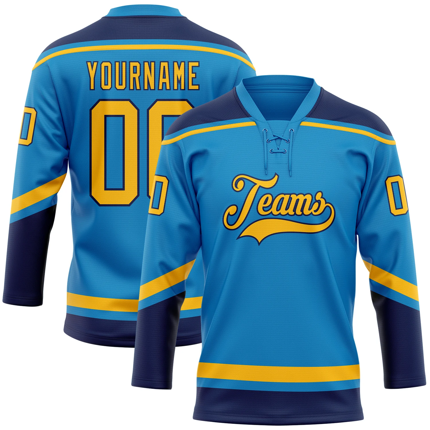 Custom Blue Gold-Navy Hockey Lace Neck Jersey