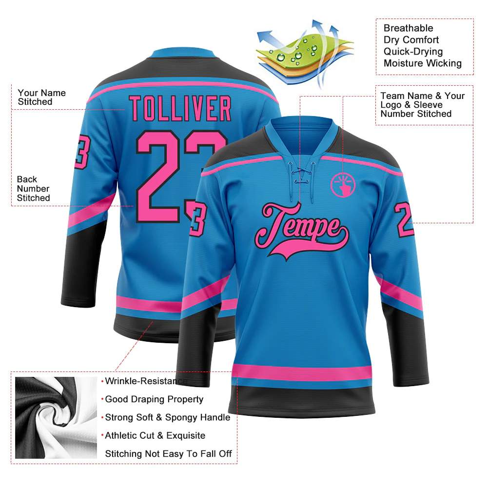 Custom Blue Pink-Black Hockey Lace Neck Jersey