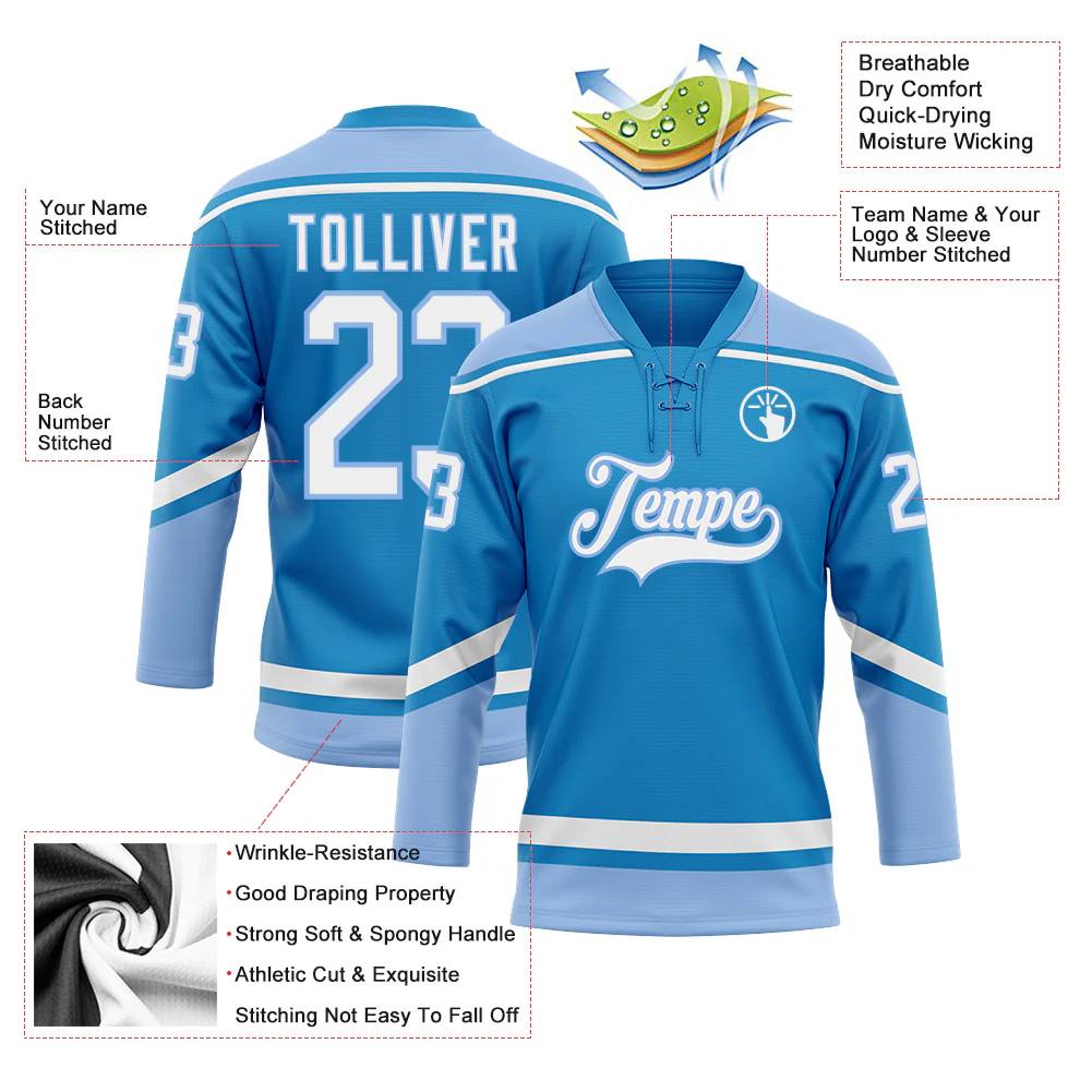 Custom Blue White-Light Blue Hockey Lace Neck Jersey