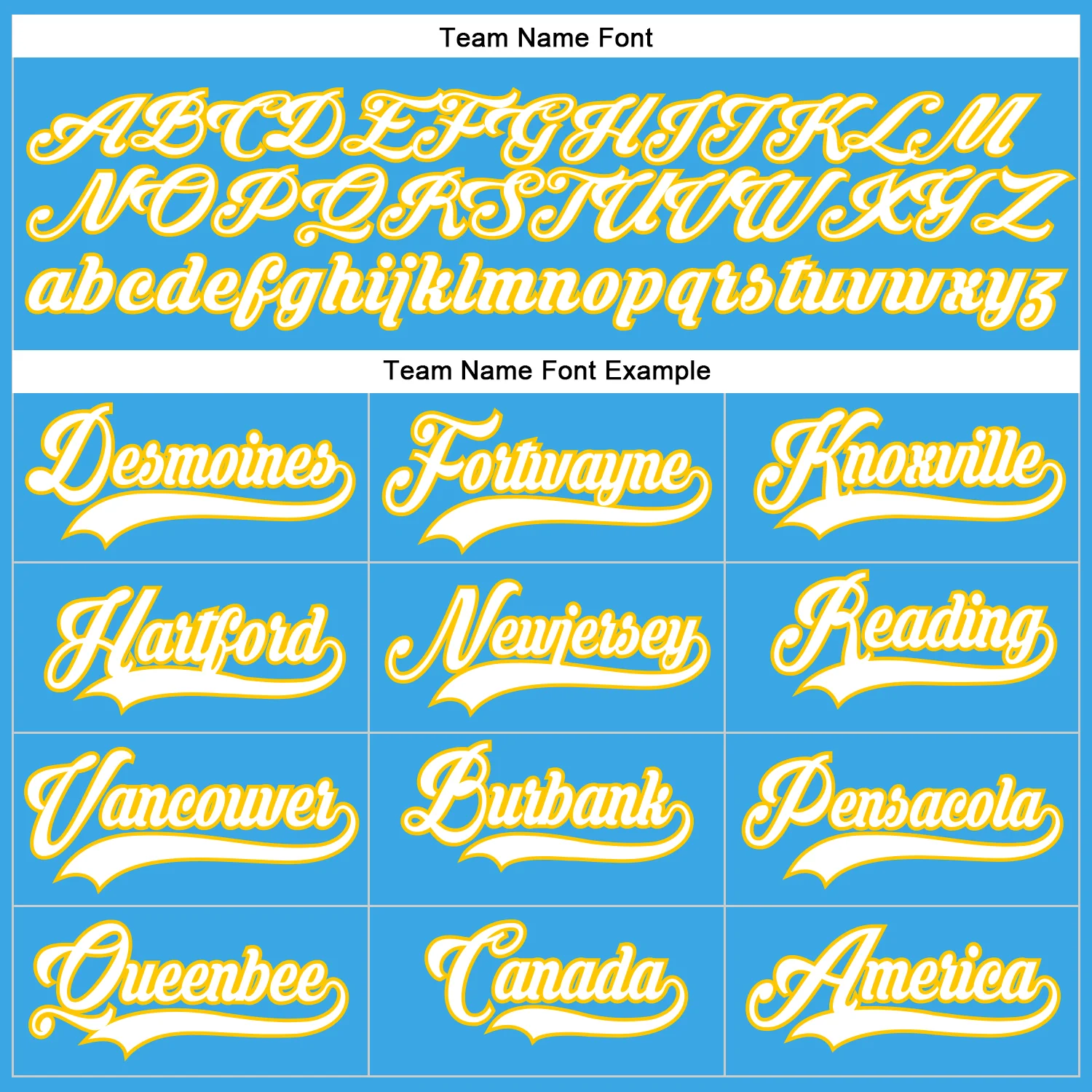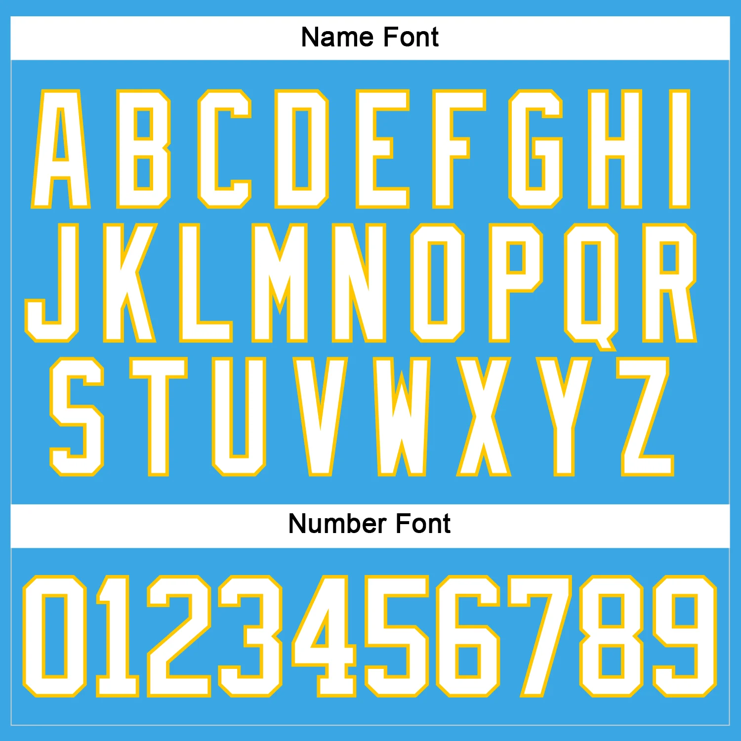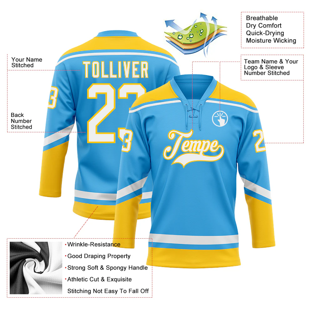 Custom Sky Blue White-Yellow Hockey Lace Neck Jersey