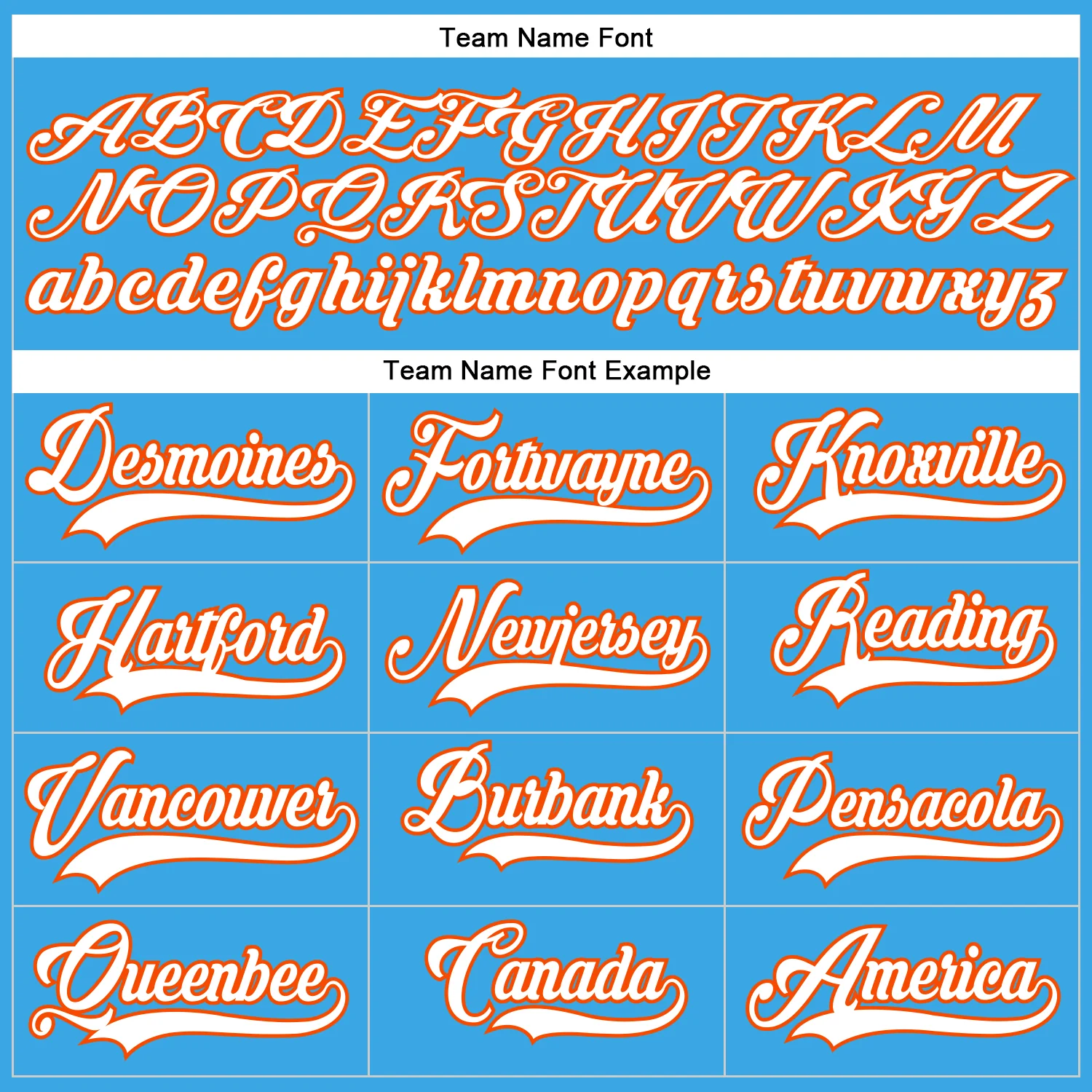 Custom Sky Blue White-Orange Hockey Lace Neck Jersey