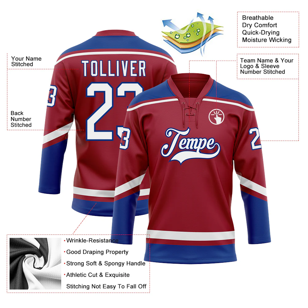 Custom Maroon White-Royal Hockey Lace Neck Jersey