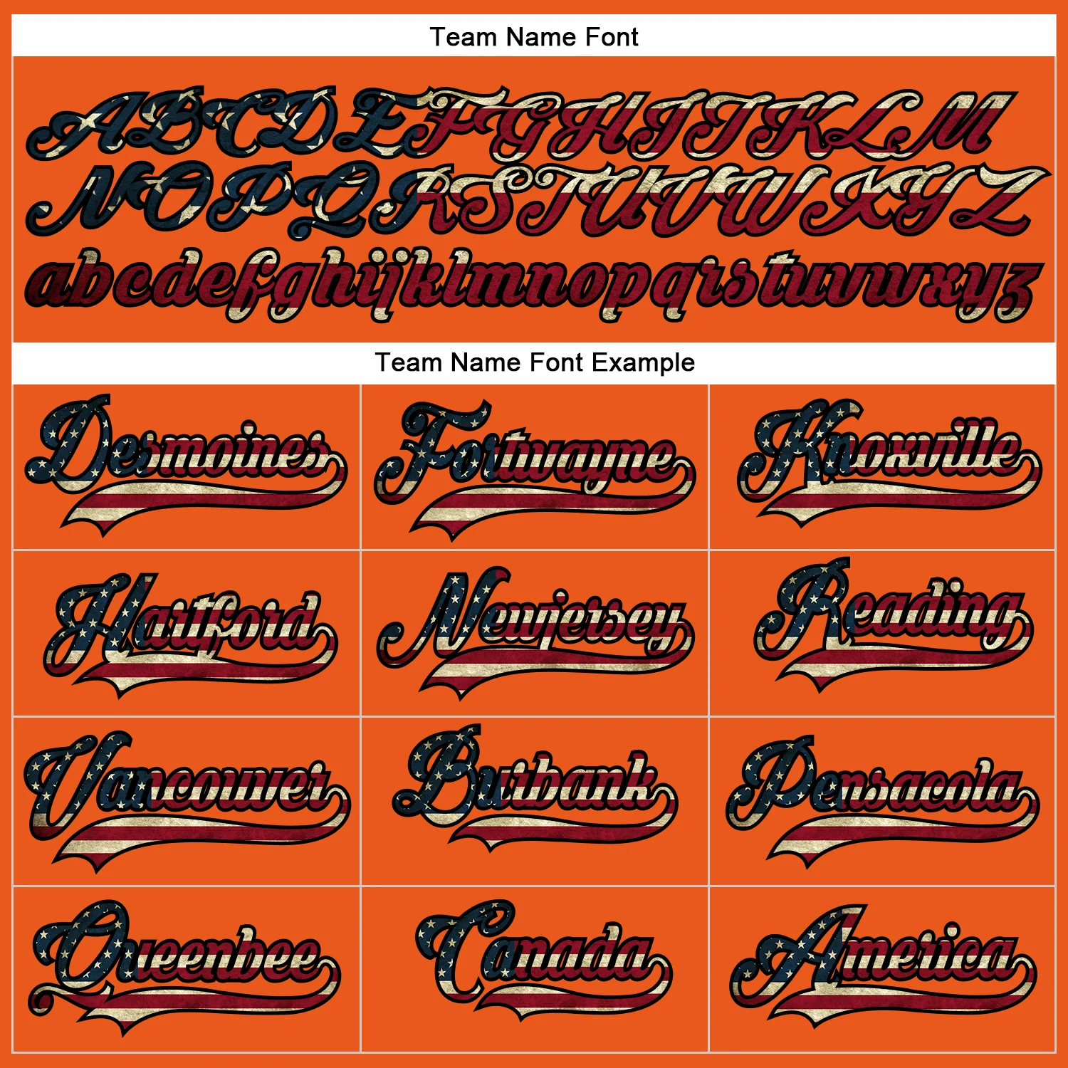 Custom Orange Vintage USA Flag Black-Cream Hockey Lace Neck Jersey