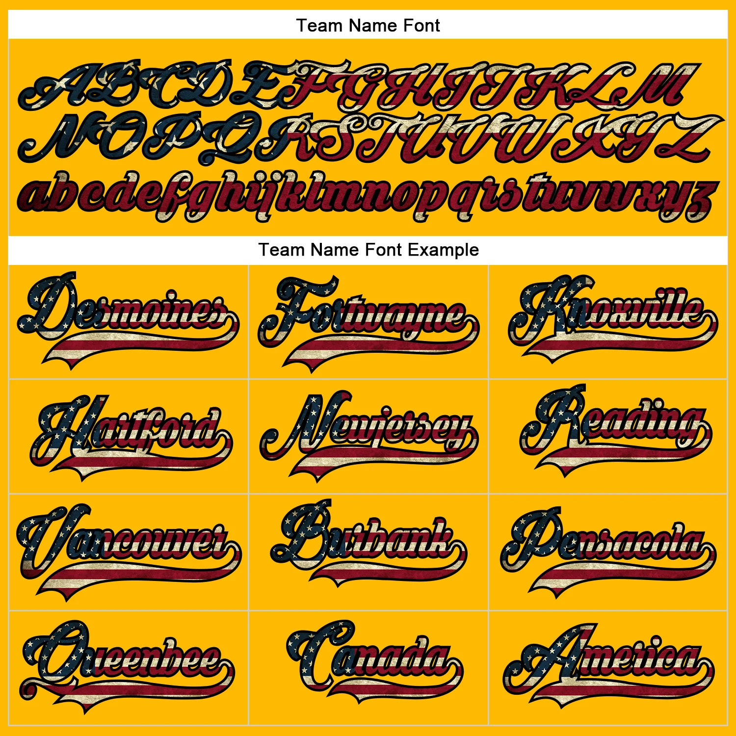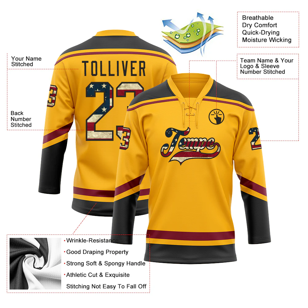 Custom Gold Vintage USA Flag Black-Crimson Hockey Lace Neck Jersey