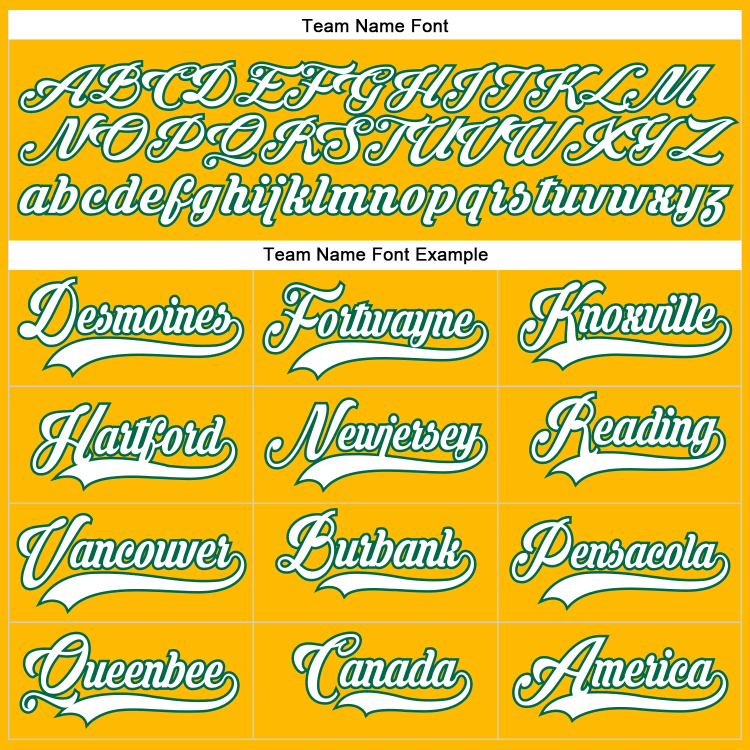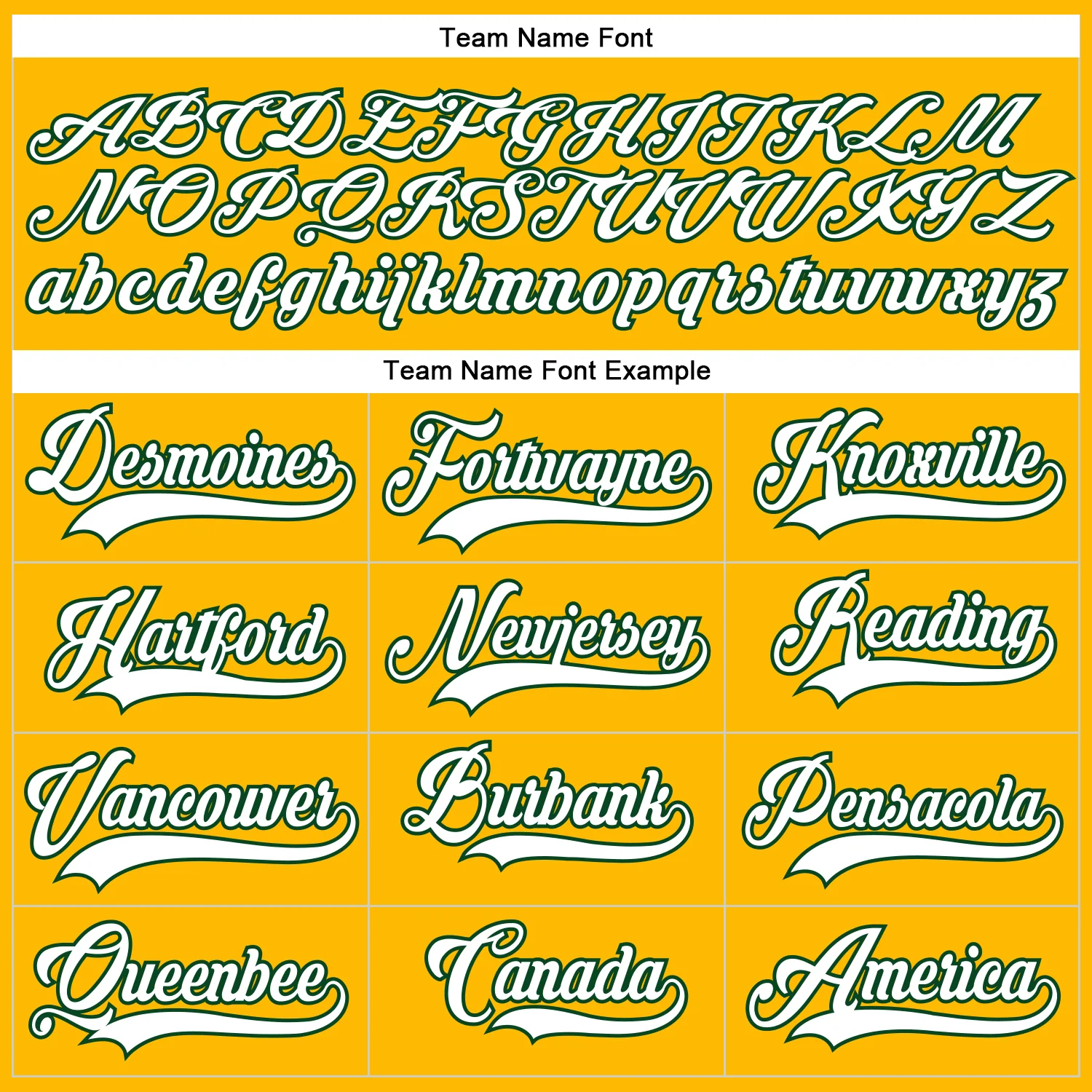 Custom Gold White-Kelly Green Hockey Lace Neck Jersey
