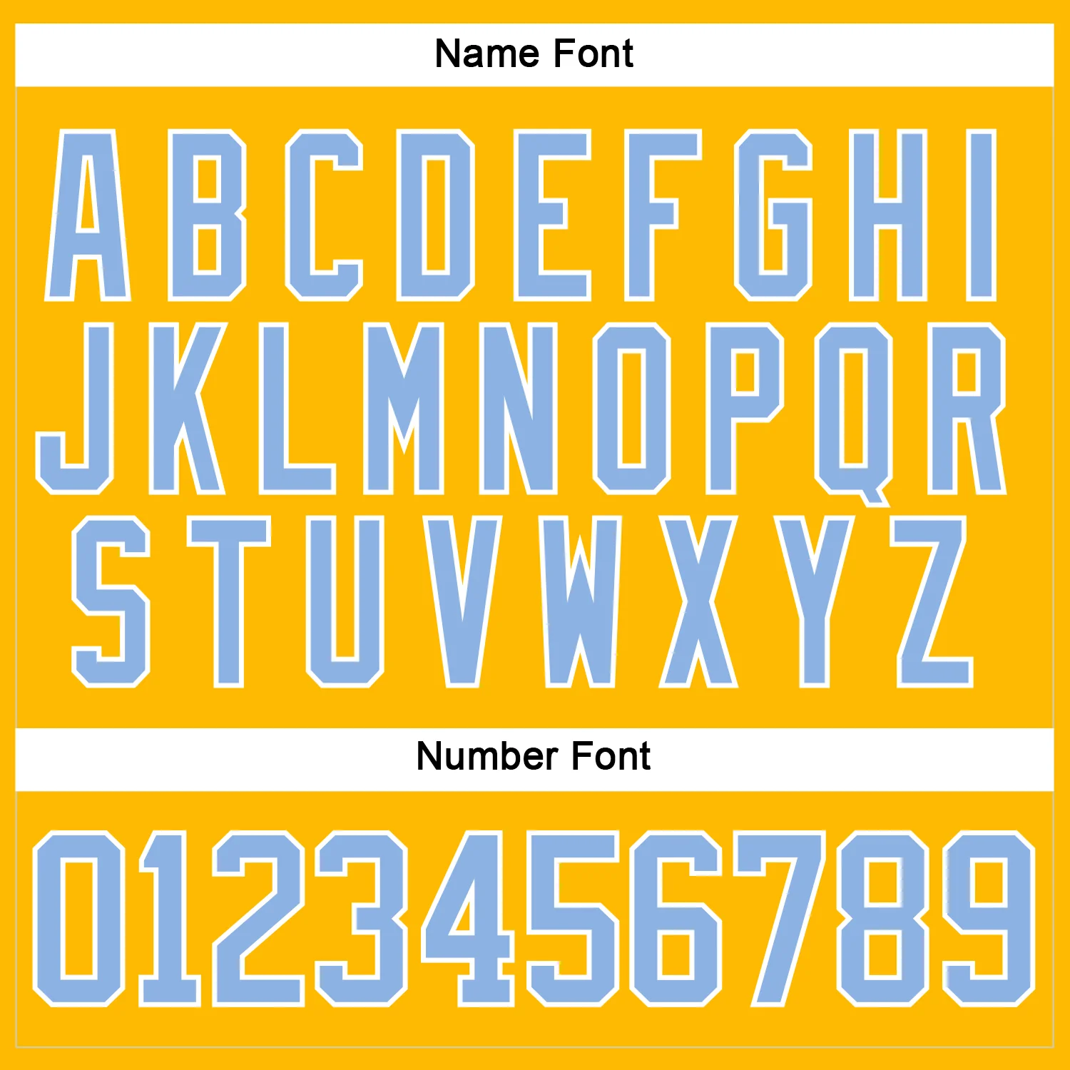 Custom Gold White-Light Blue Hockey Lace Neck Jersey