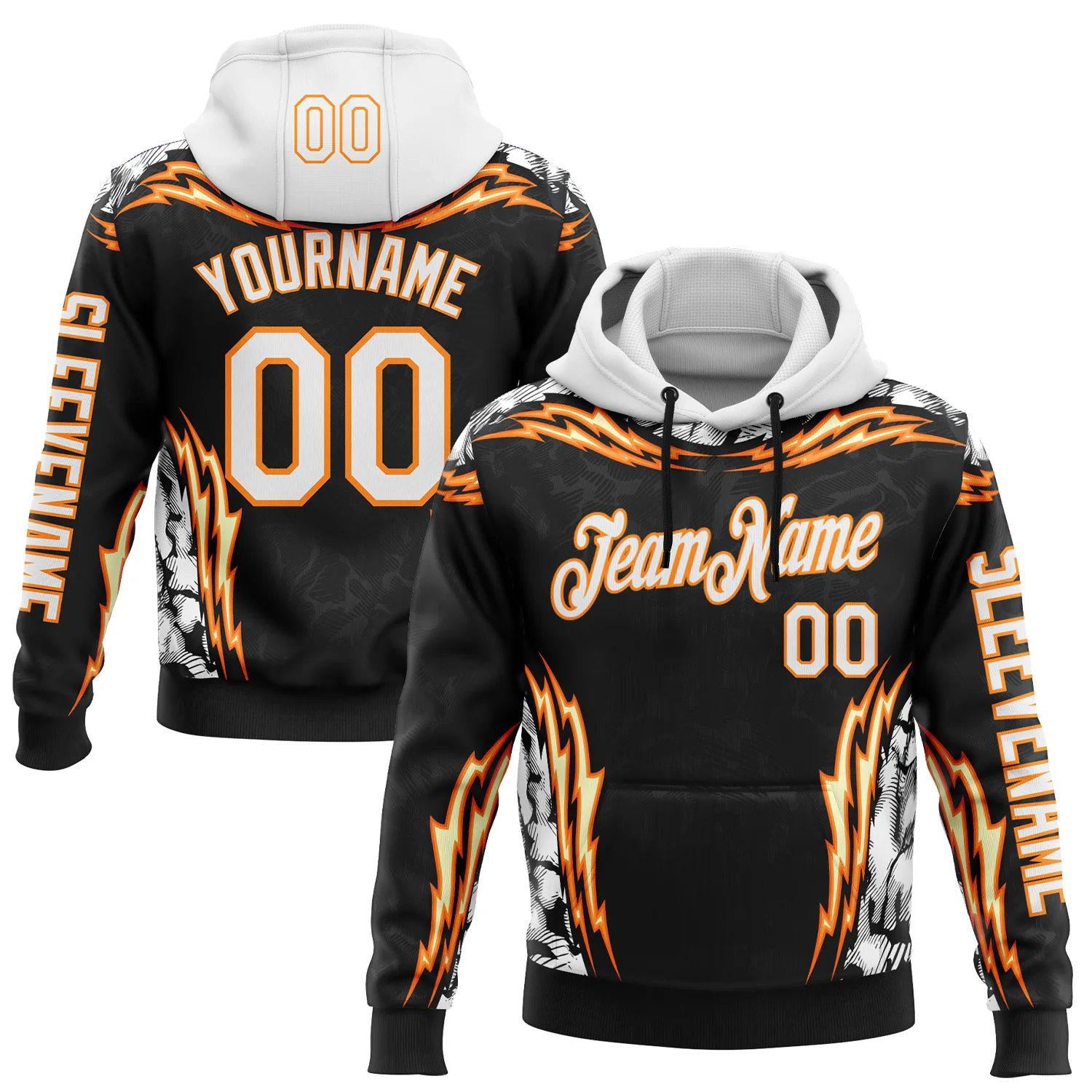 Custom Black Orange-White 3D Abstract Flame Sports Pullover Sweatshirt Hoodie