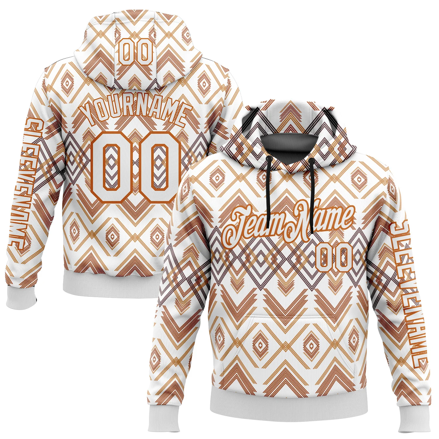 Custom White Texas Orange-Black 3D Pattern Design Western Cowboy Tribal Ethnic Sports Pullover Sweatshirt Hoodie