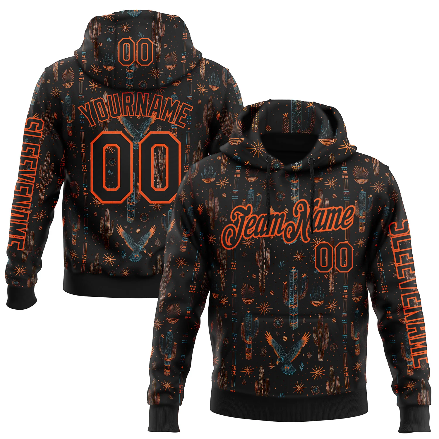 Custom Black Orange 3D Pattern Design Western Cowboy Tribal Ethnic Sports Pullover Sweatshirt Hoodie