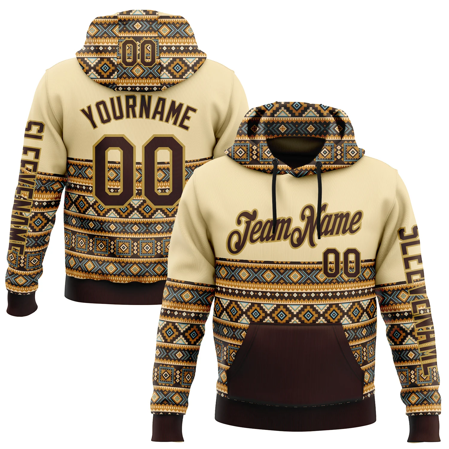 Custom Cream Brown-Old Gold 3D Pattern Design Western Cowboy Tribal Ethnic Sports Pullover Sweatshirt Hoodie