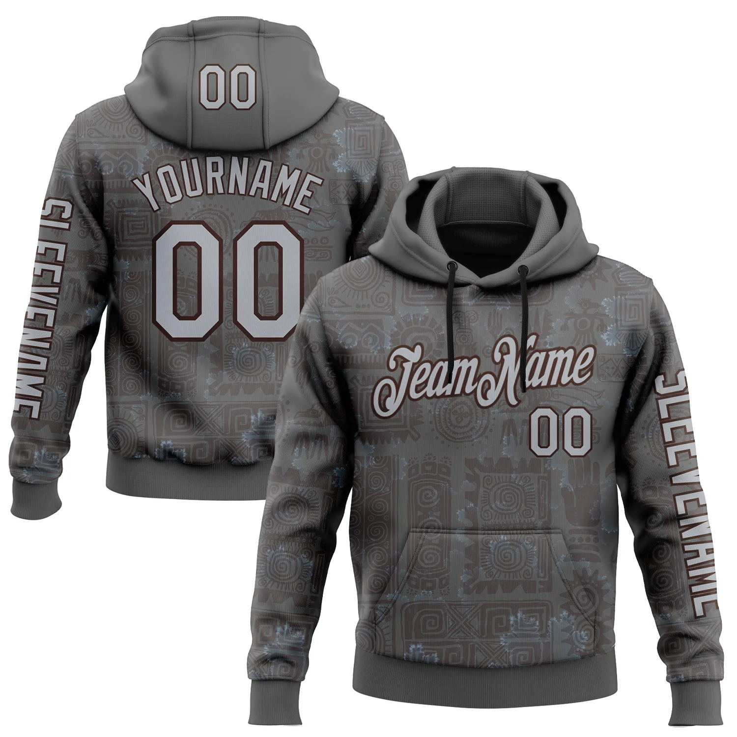 Custom Gray Brown 3D Pattern Design Ethnic Tribal Sportswear Pullover Sweatshirt Hoodie