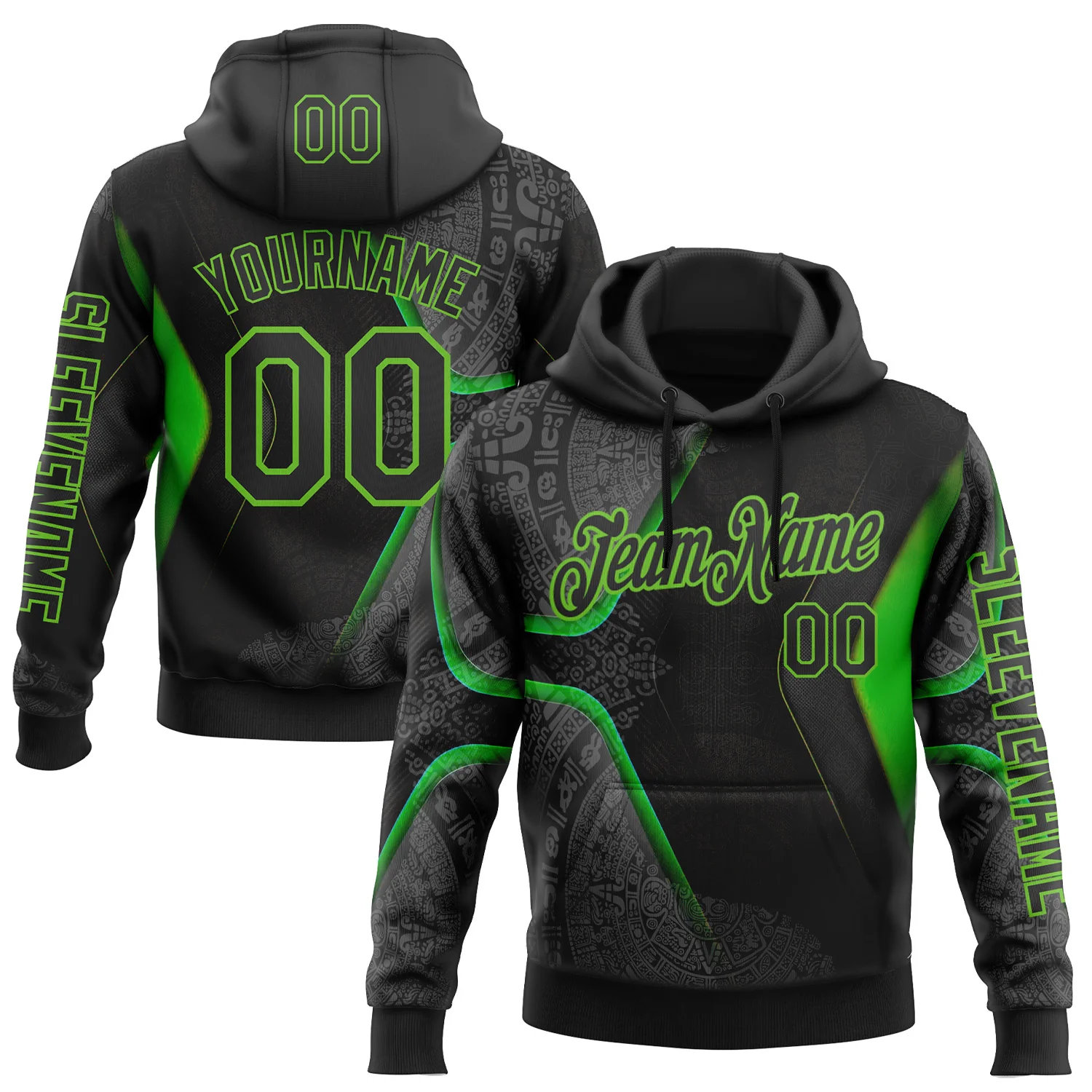 Custom Black Aurora Green 3D Pattern Design Ethnic Tribal Sportswear Pullover Sweatshirt Hoodie