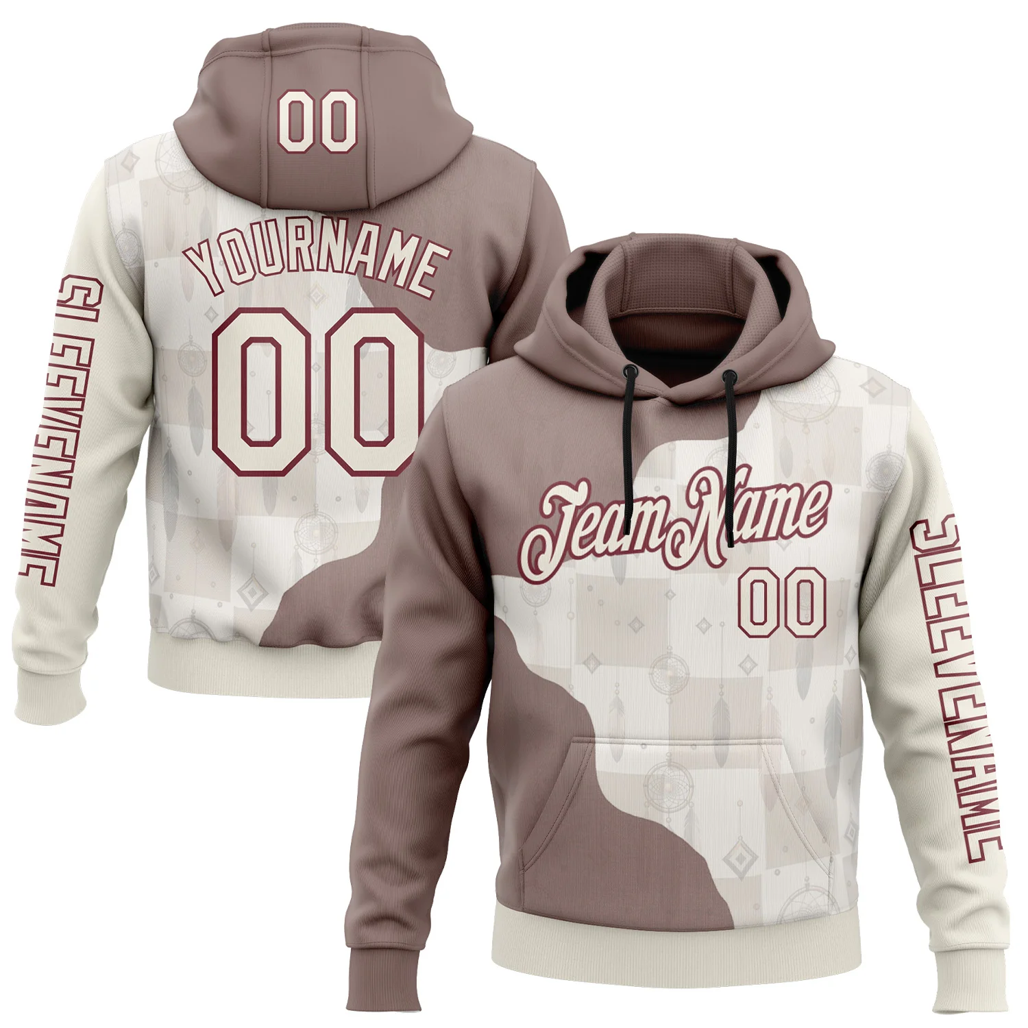 Custom Cream Burgundy 3D Pattern Design Ethnic Tribal Sportswear Pullover Sweatshirt Hoodie