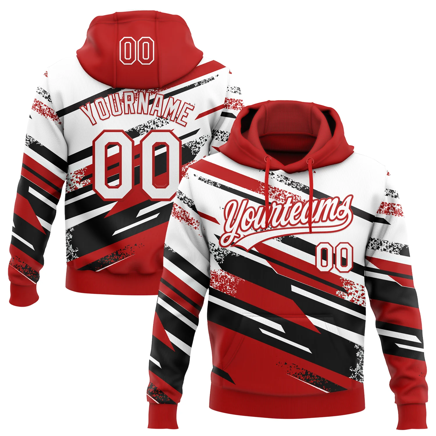 Custom Stitched Red White-Black 3D Pattern Design Line Sportswear Pullover Sweatshirt Hoodie