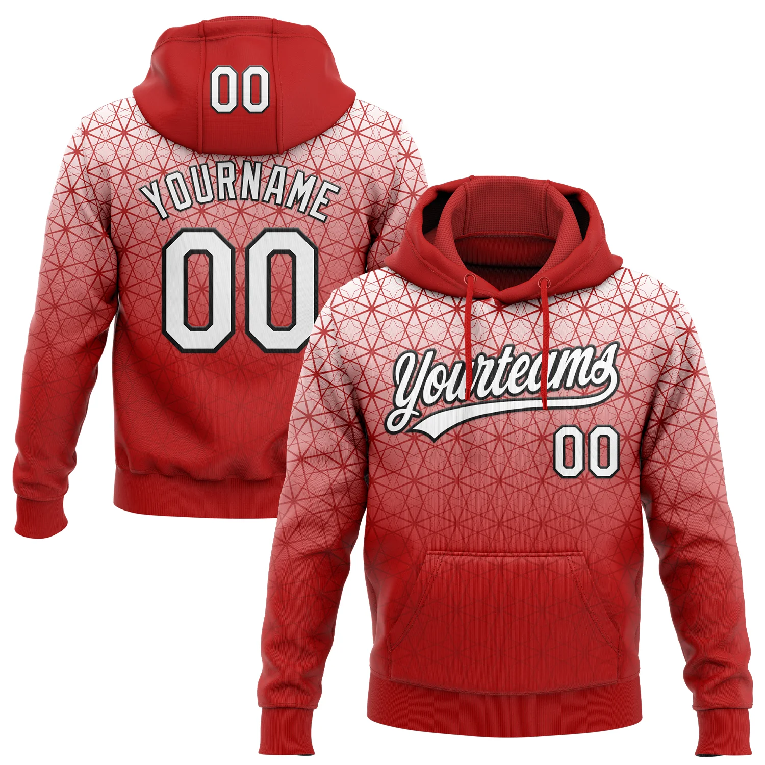 Custom Stitched Red White-Black 3D Pattern Design Gradient Line Sportswear Pullover Sweatshirt Hoodie