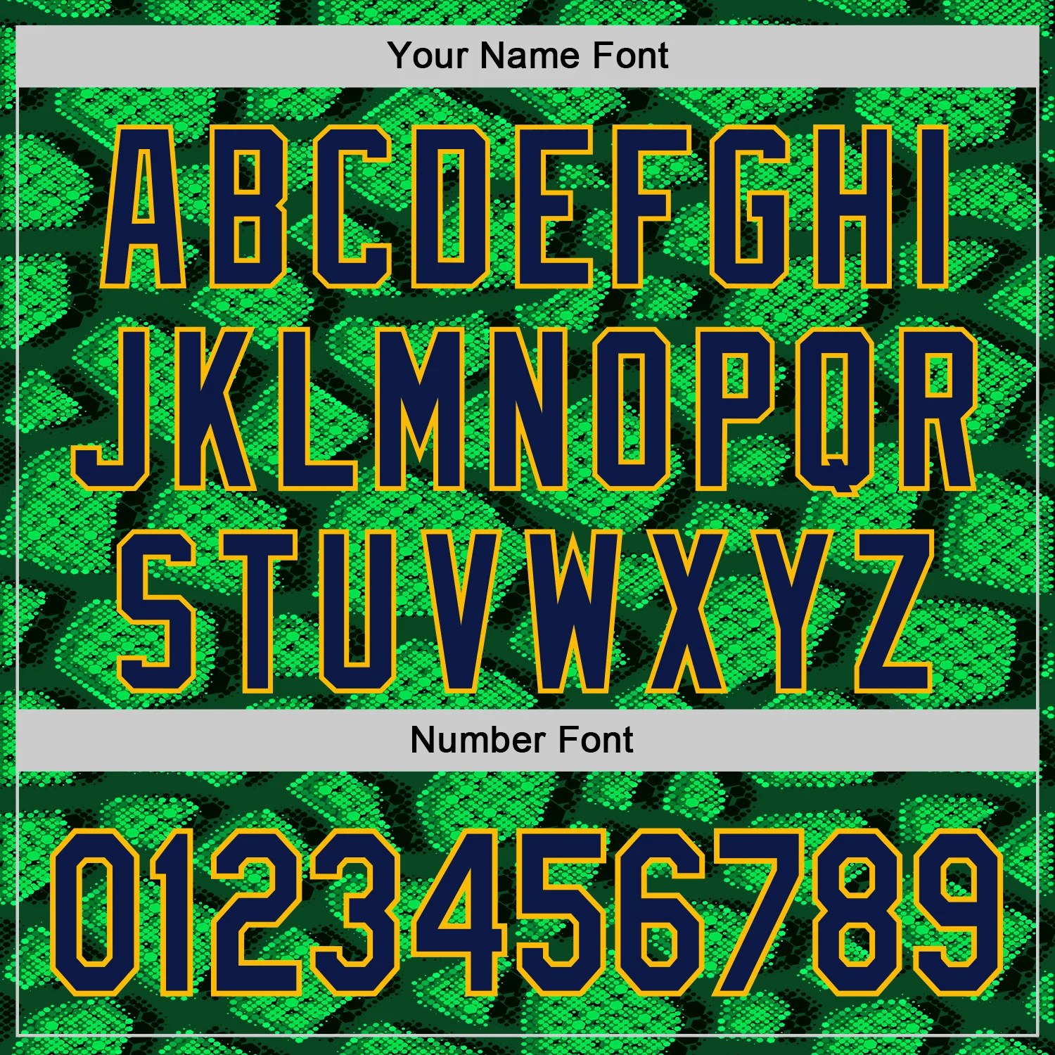 Custom Stitched Neon Green Navy-Gold 3D Pattern Design Crocodile Skin Print Sportswear Pullover Sweatshirt Hoodie