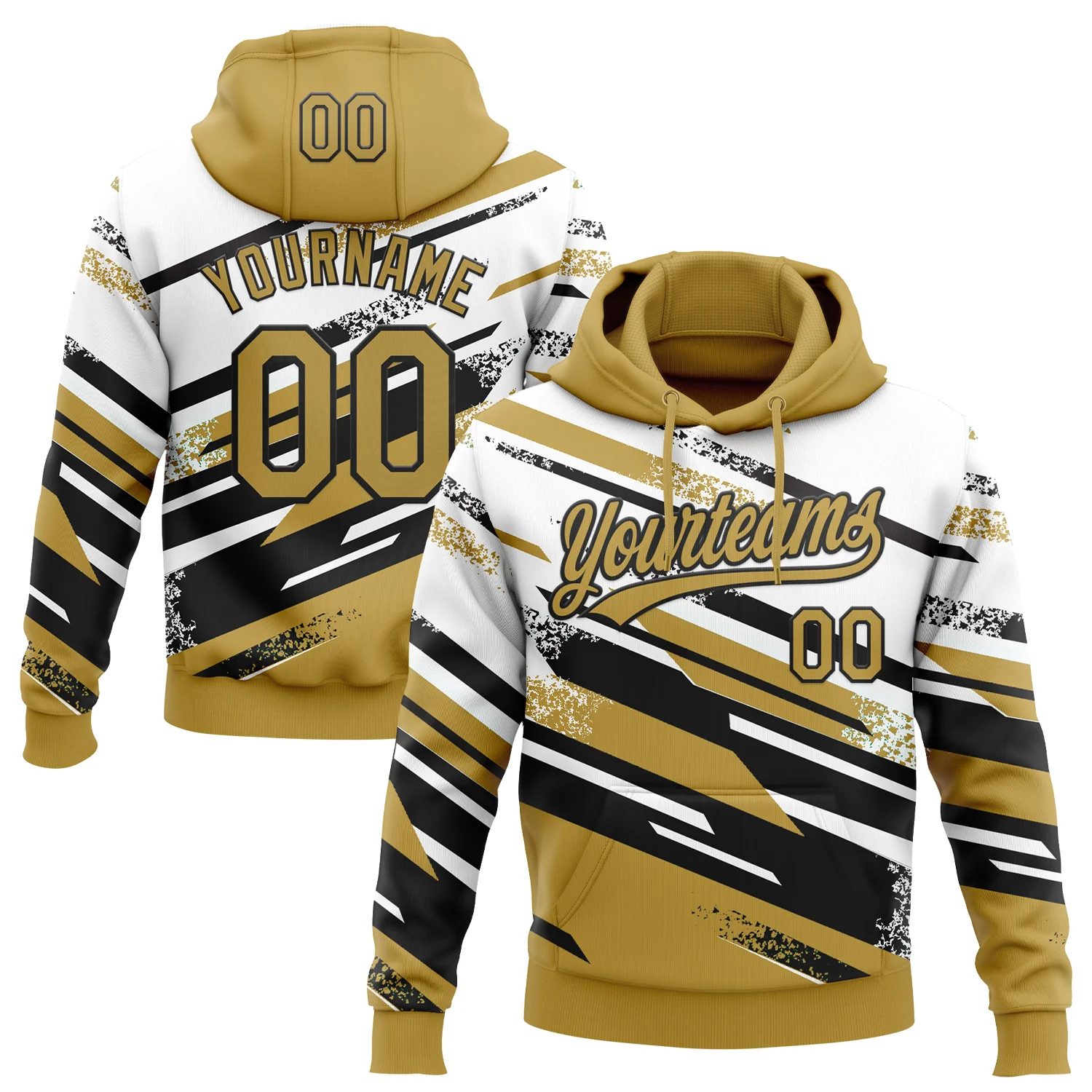 Custom Stitched Old Gold Black-White 3D Pattern Design Line Sportswear Pullover Sweatshirt Hoodie