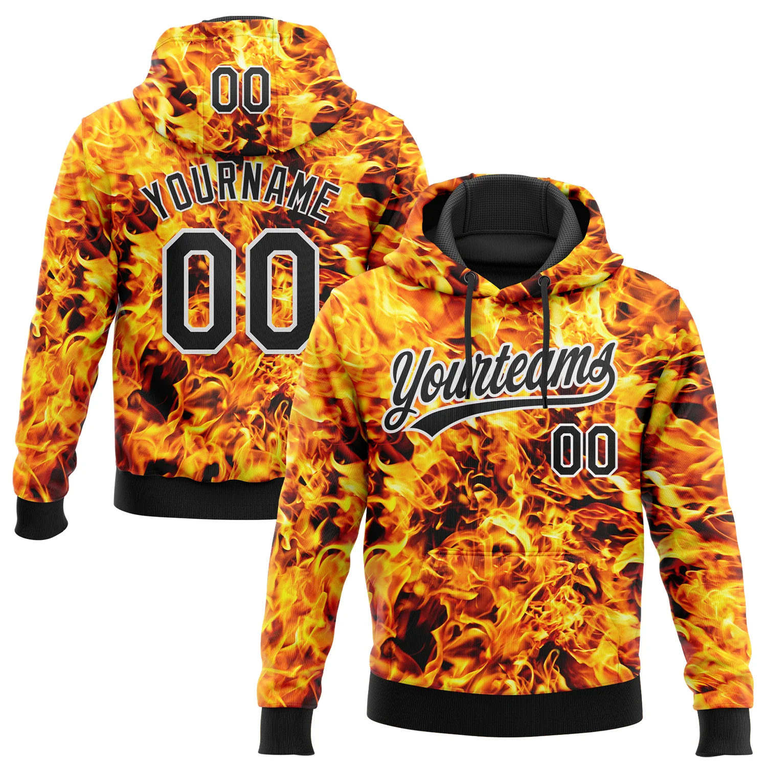 Custom Stitched Black Yellow-White 3D Pattern Design Flame Sports Pullover Sweatshirt Hoodie