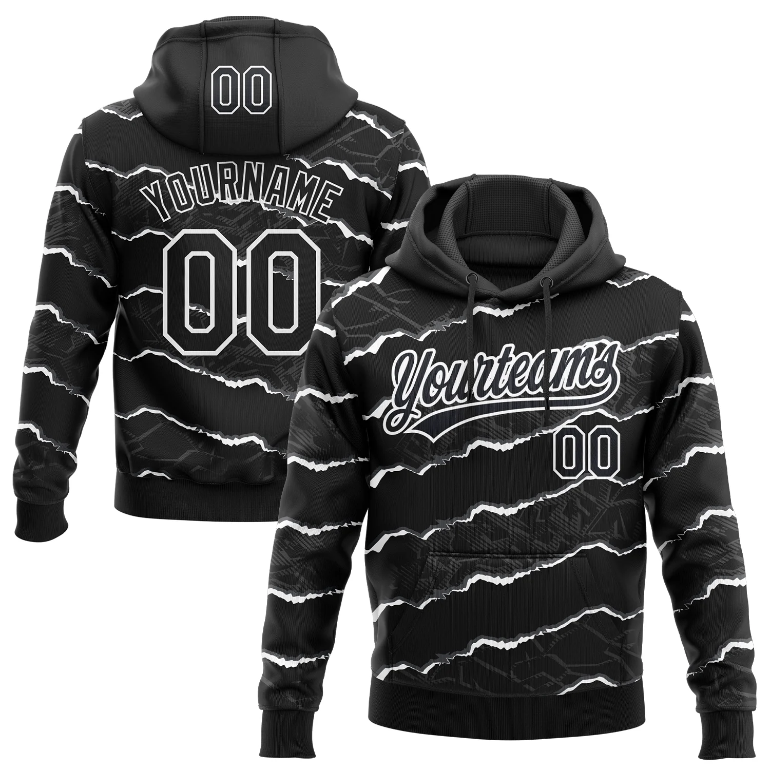 Custom Stitched Black White 3D Pattern Design Torn Paper Style Sports Pullover Sweatshirt Hoodie