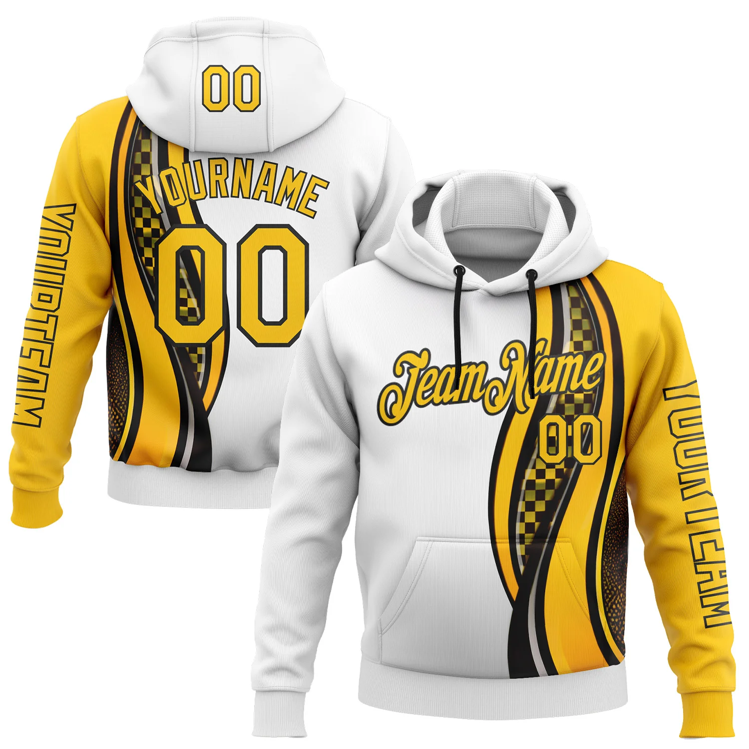 Custom Yellow Black-White 3D Pattern Design Formula Auto Car Racing Motorsport Sports Pullover Sweatshirt Hoodie