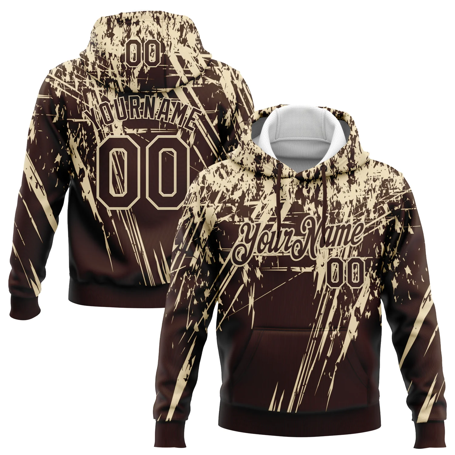 Custom Stitched Brown Cream 3D Pattern Design Splash Grunge Art Sports Pullover Sweatshirt Hoodie