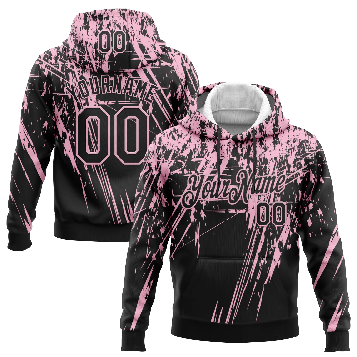 Custom Stitched Black Light Pink 3D Pattern Design Splash Grunge Art Sports Pullover Sweatshirt Hoodie