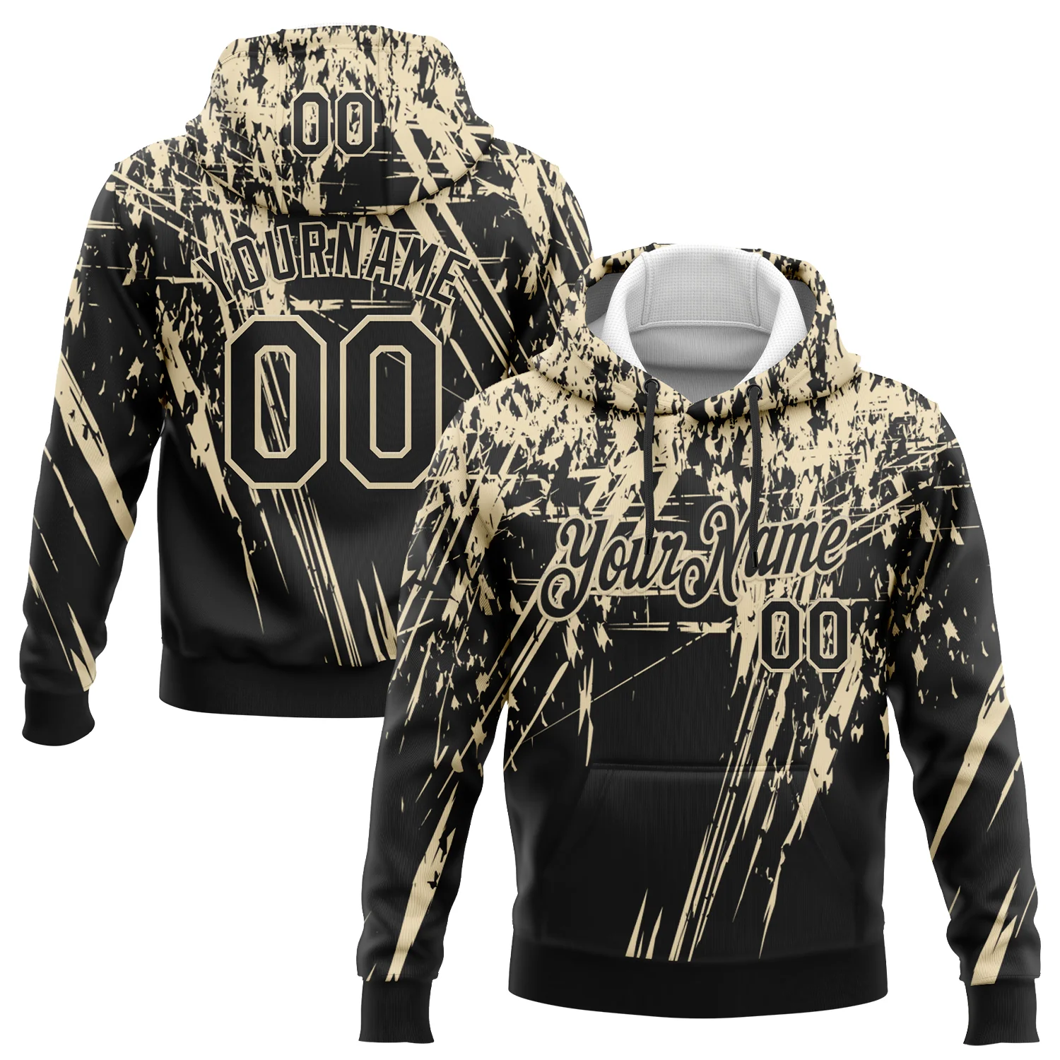 Custom Stitched Black Cream 3D Pattern Design Splash Grunge Art Sports Pullover Sweatshirt Hoodie