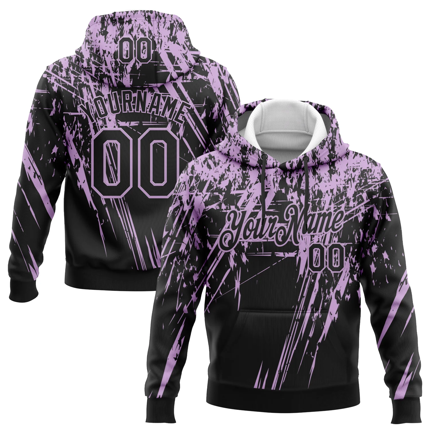 Custom Stitched Black Light Purple 3D Pattern Design Splash Grunge Art Sports Pullover Sweatshirt Hoodie