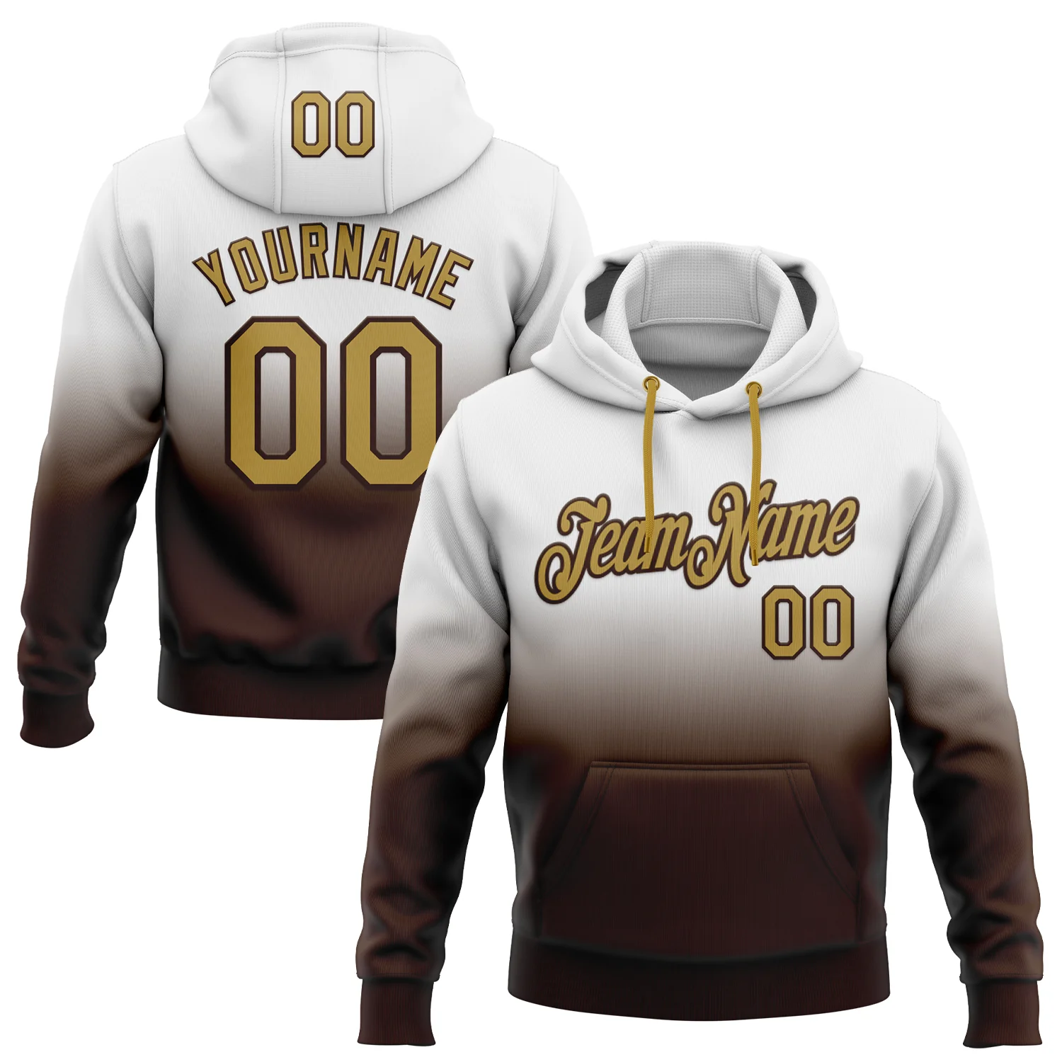 Custom Stitched White Gold-Brown Fade Fashion Sports Pullover Sweatshirt Hoodie