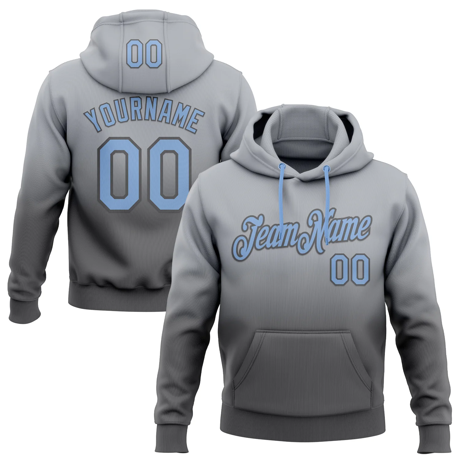 Custom Stitched Gray Light Blue-Steel Gray Fade Fashion Sports Pullover Sweatshirt Hoodie