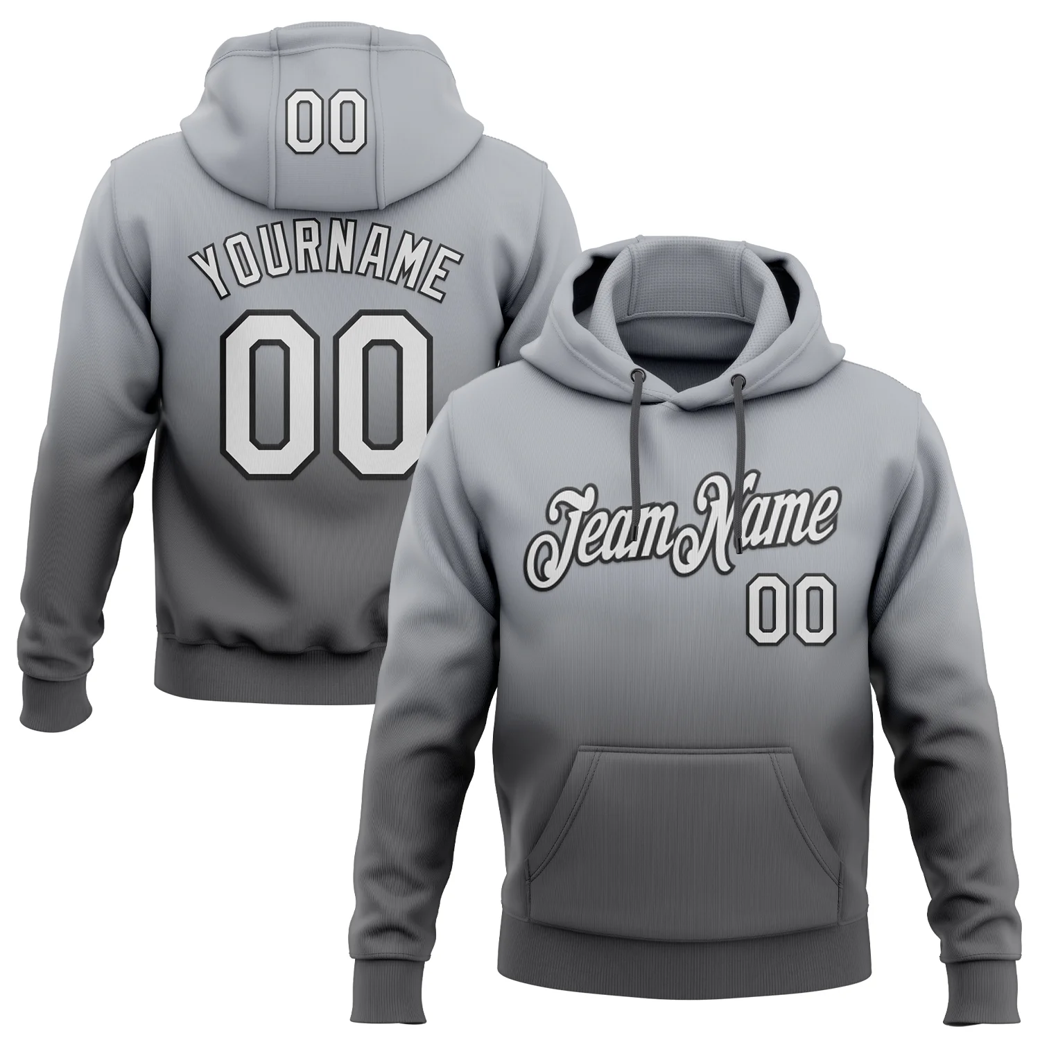 Custom Stitched Gray White Steel Gray-Black Fade Fashion Sports Pullover Sweatshirt Hoodie