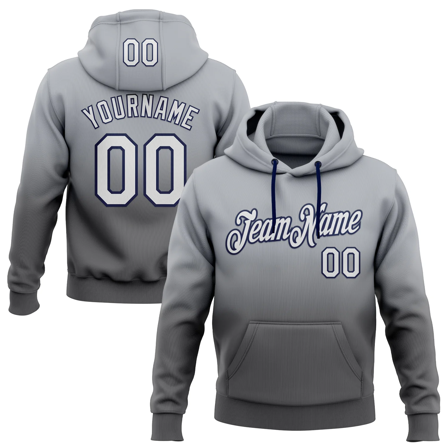 Custom Stitched Gray White Steel Gray-Navy Fade Fashion Sports Pullover Sweatshirt Hoodie