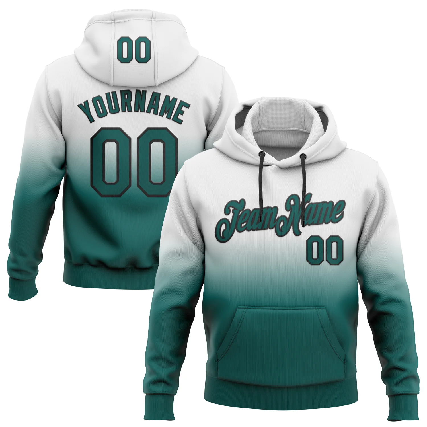Custom Stitched White Midnight Green-Black Fade Fashion Sports Pullover Sweatshirt Hoodie