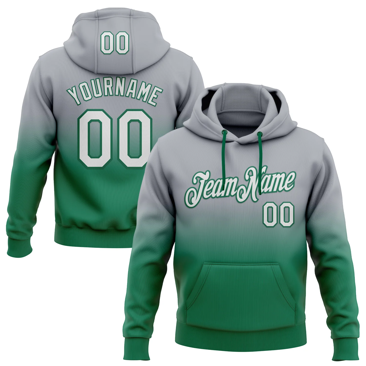 Custom Stitched Gray White-Kelly Green Fade Fashion Sports Pullover Sweatshirt Hoodie