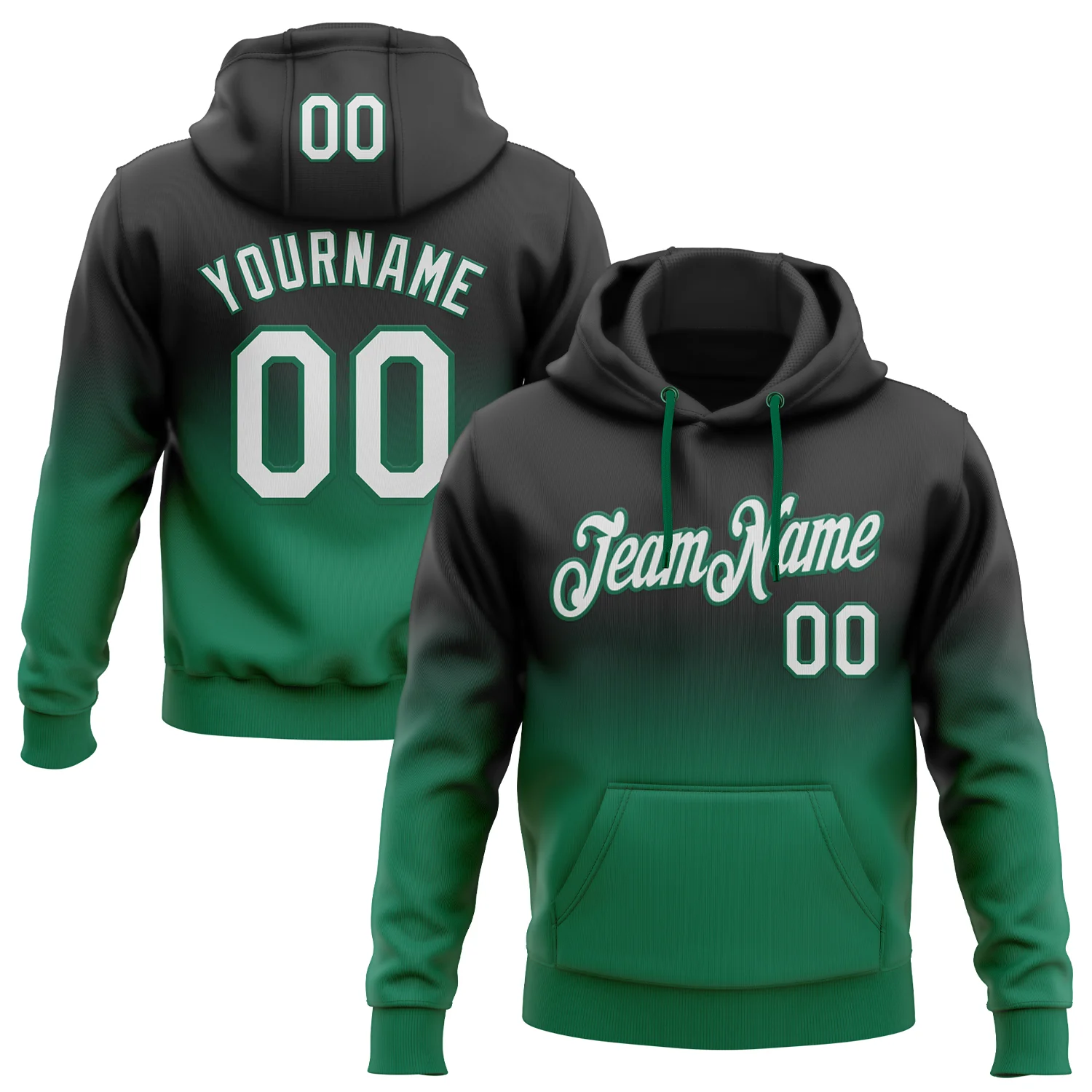 Custom Stitched Black White-Kelly Green Fade Fashion Sports Pullover Sweatshirt Hoodie
