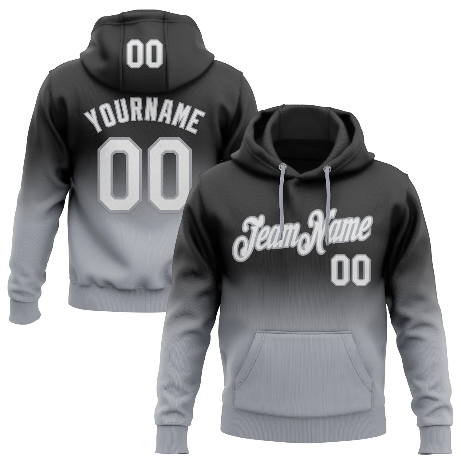 Custom Stitched Black White-Gray Fade Fashion Sports Pullover Sweatshirt Hoodie