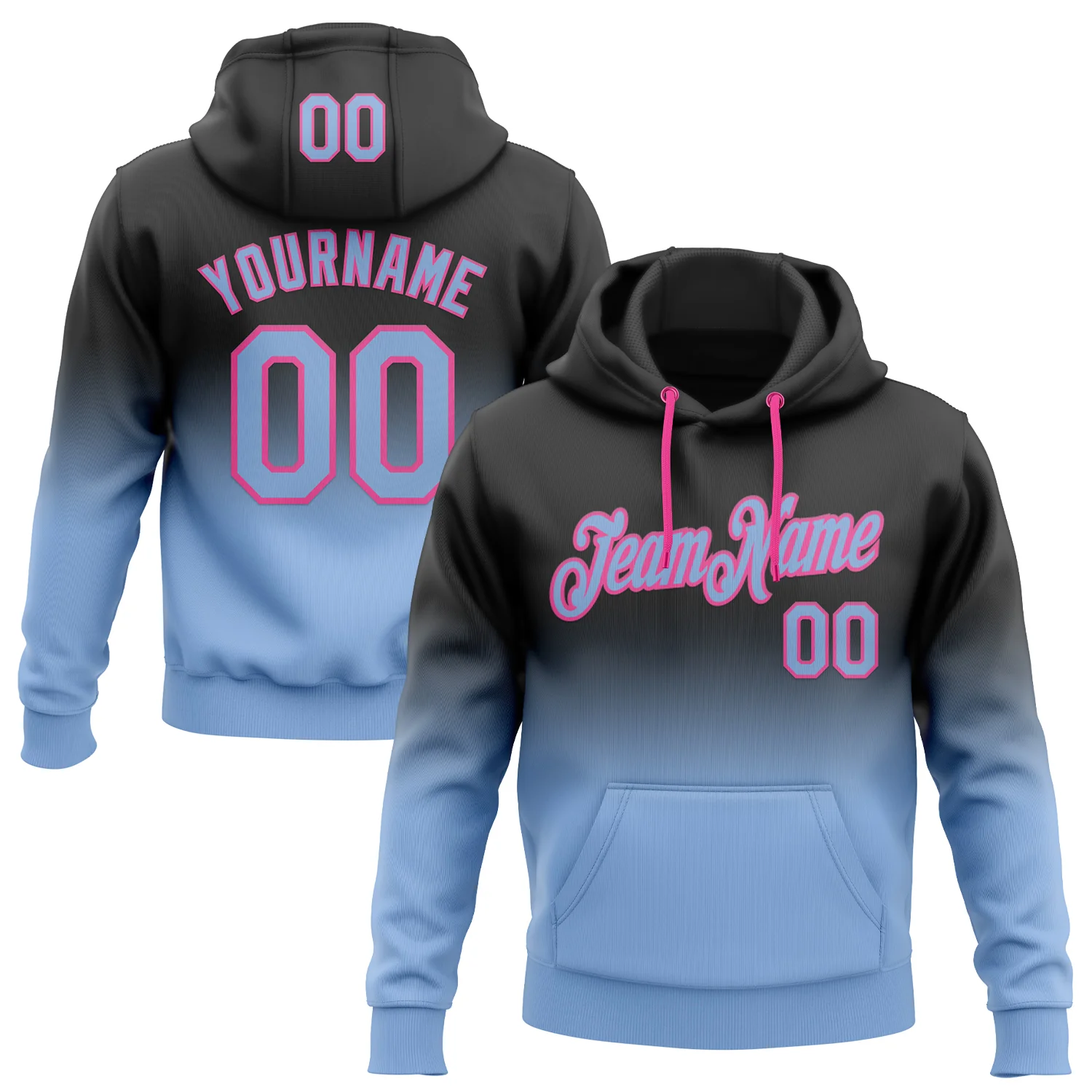 Custom Stitched Black Light Blue-Pink Fade Fashion Sports Pullover Sweatshirt Hoodie
