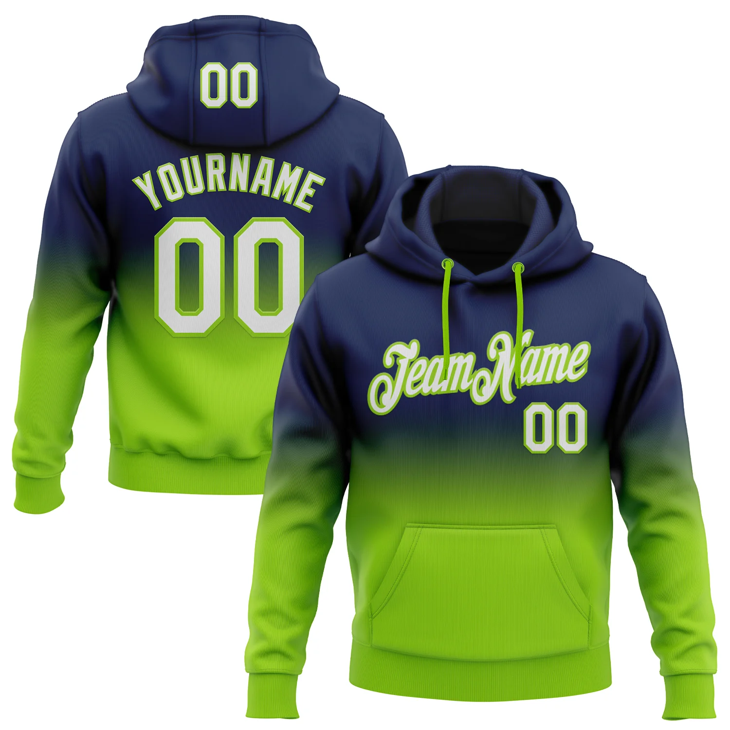 Custom Stitched Navy White-Neon Green Fade Fashion Sports Pullover Sweatshirt Hoodie